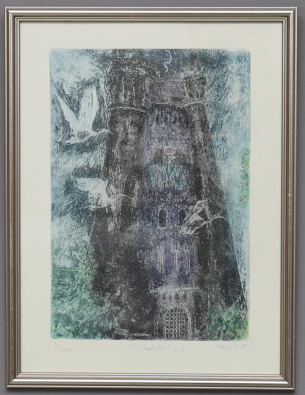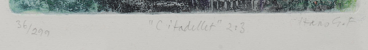 1308312. OIDENTIFIERAD KONSTNÄR. Farveætning, "Citadellet", signeret Hans GF.