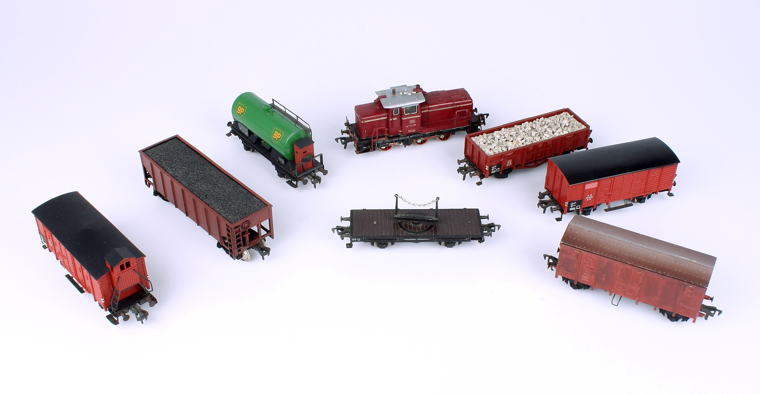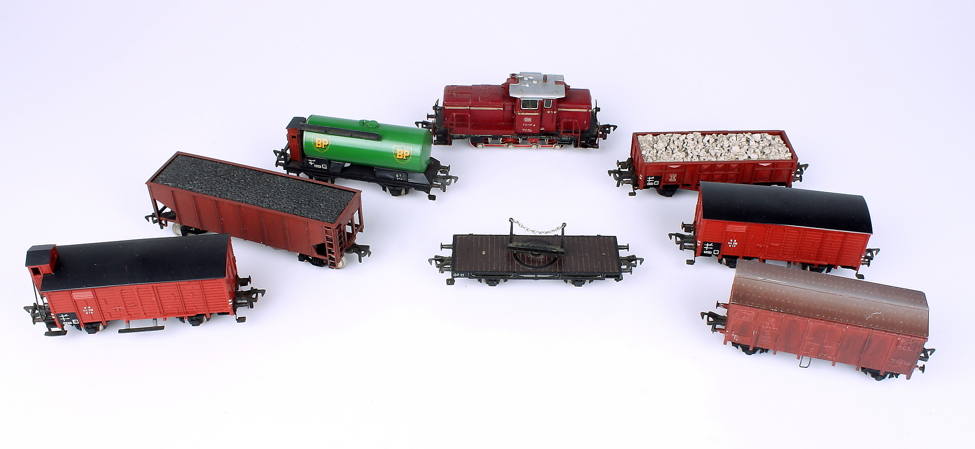 130988. MODELTOG, 8 stk, godsvogne + lokomotiv, Fleischmann.