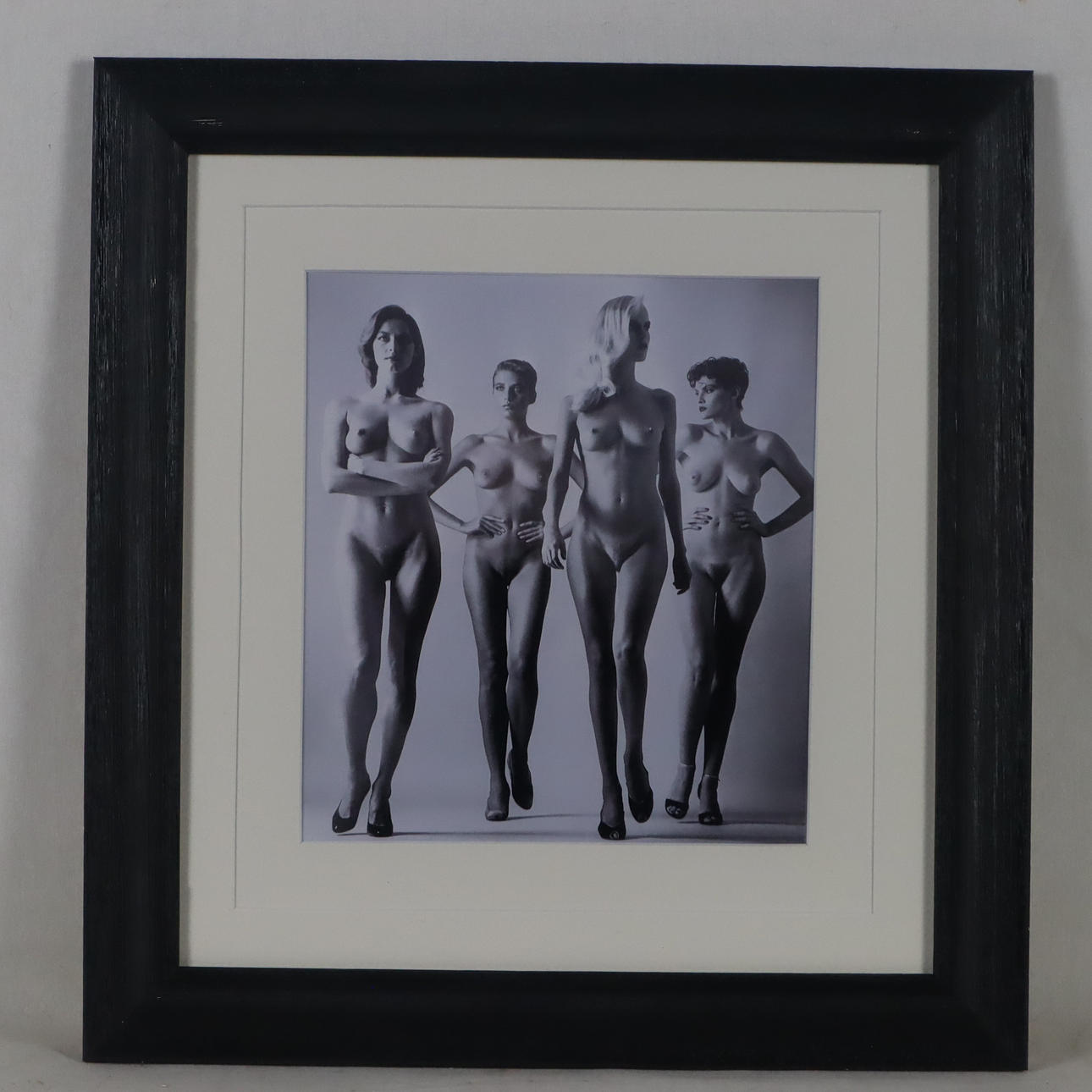 Newton, Helmut (Berlin 1920 - Los Angeles 2004) - "De kommer", Paris 1981, offsettryk, indrammet med PP under glas, PP-sektion ca. 22x20cm, rammemål ca 39,5x37cm.