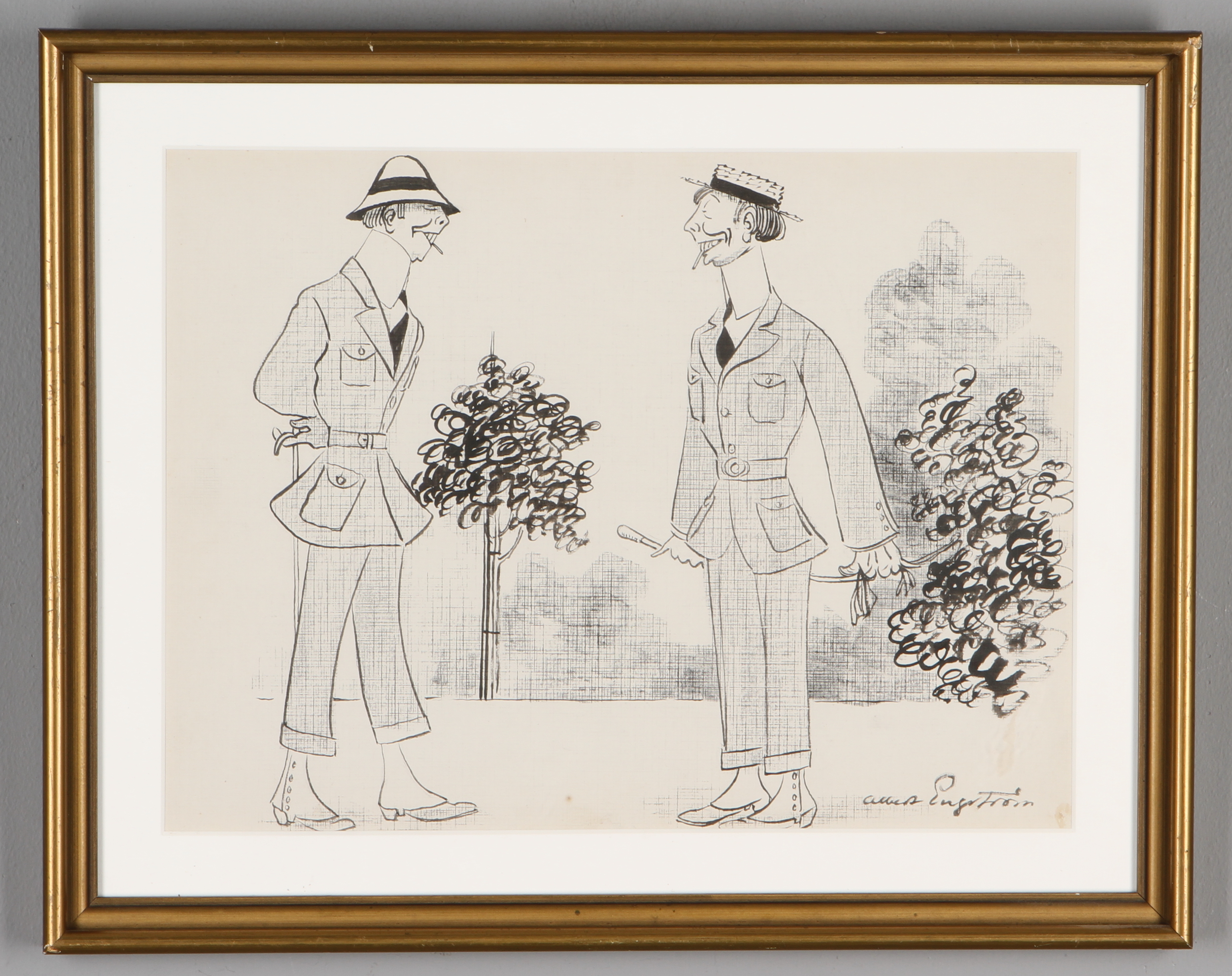 13104. FØLGETEGNINGER, 2 stk, Albert Engström og Axel Bäckman, blæk.