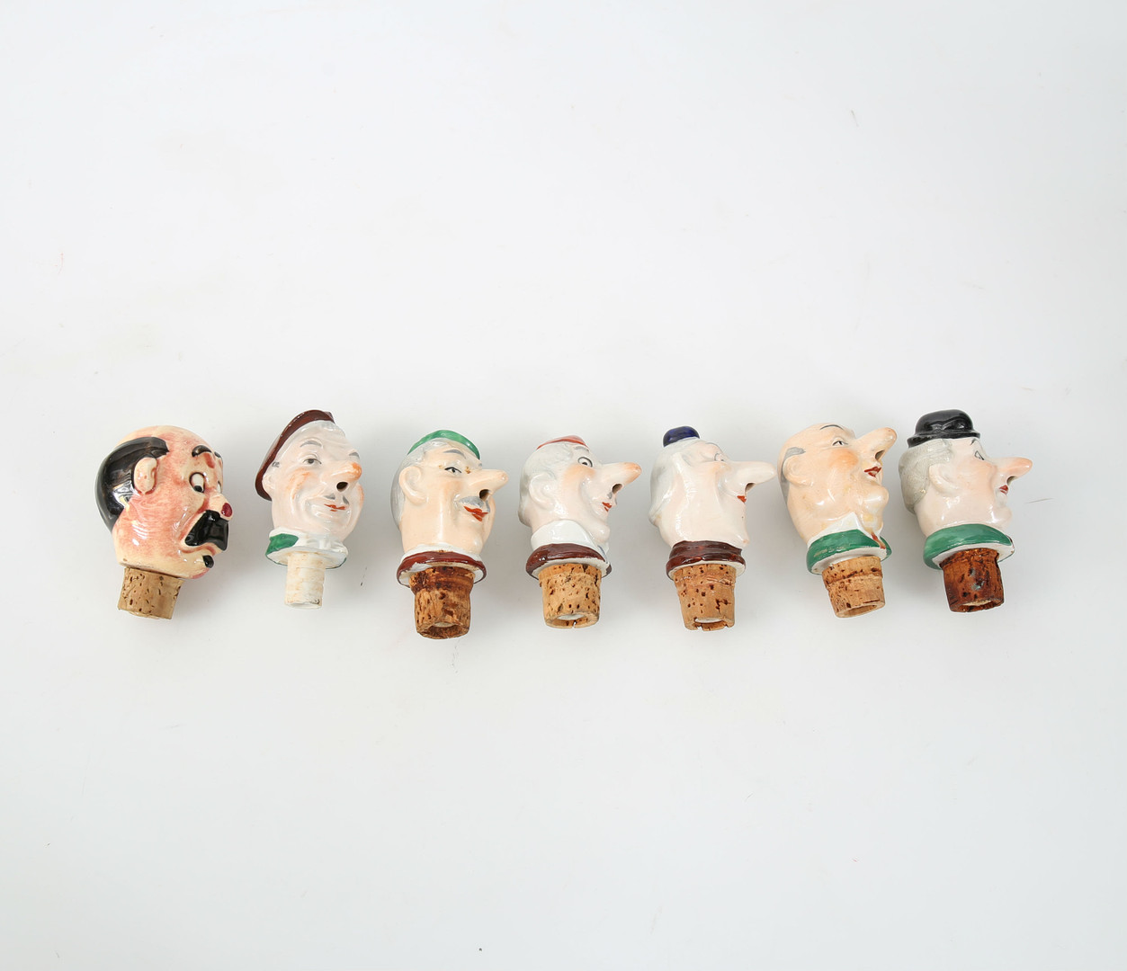 1313154. FLASKERØR OG PROPPER, porcelæn, 7 dele, 1900-tallet.