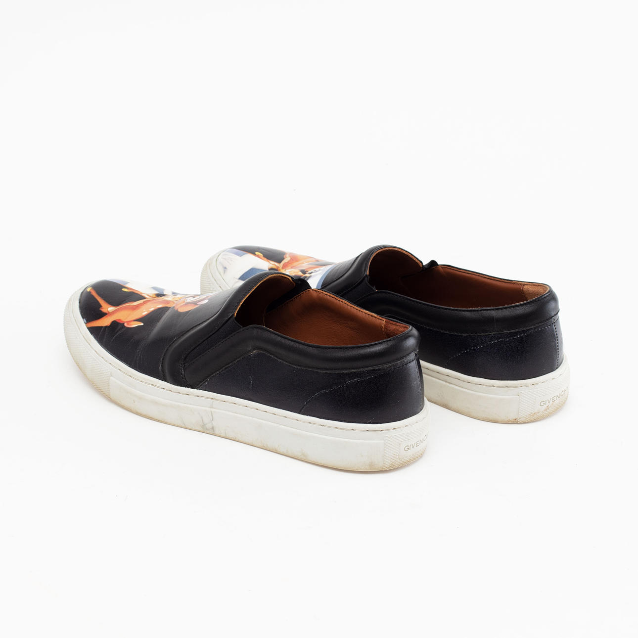 Sort læder med tegneseriefigur print. Mærket "Givenchy Paris made in Italy".