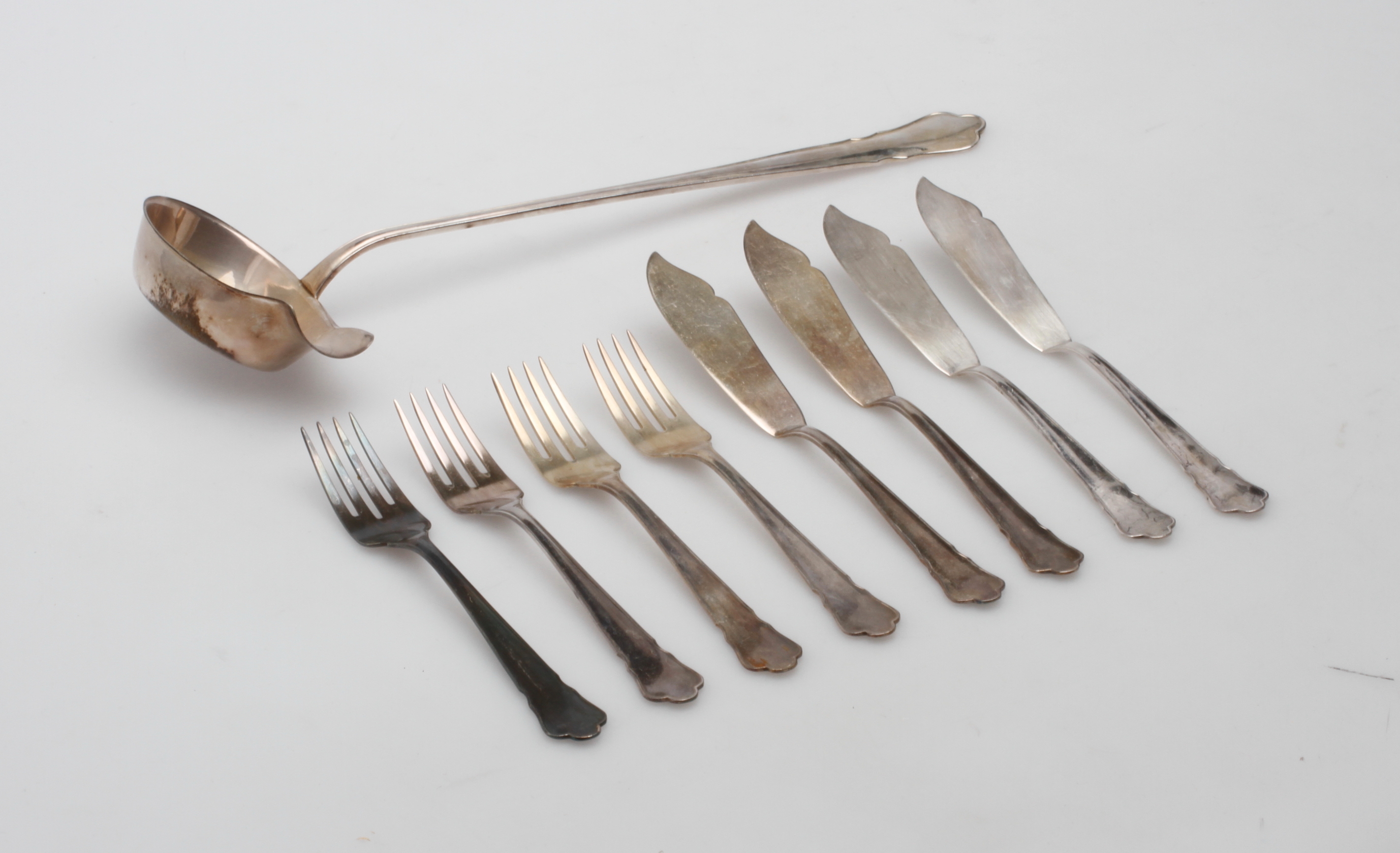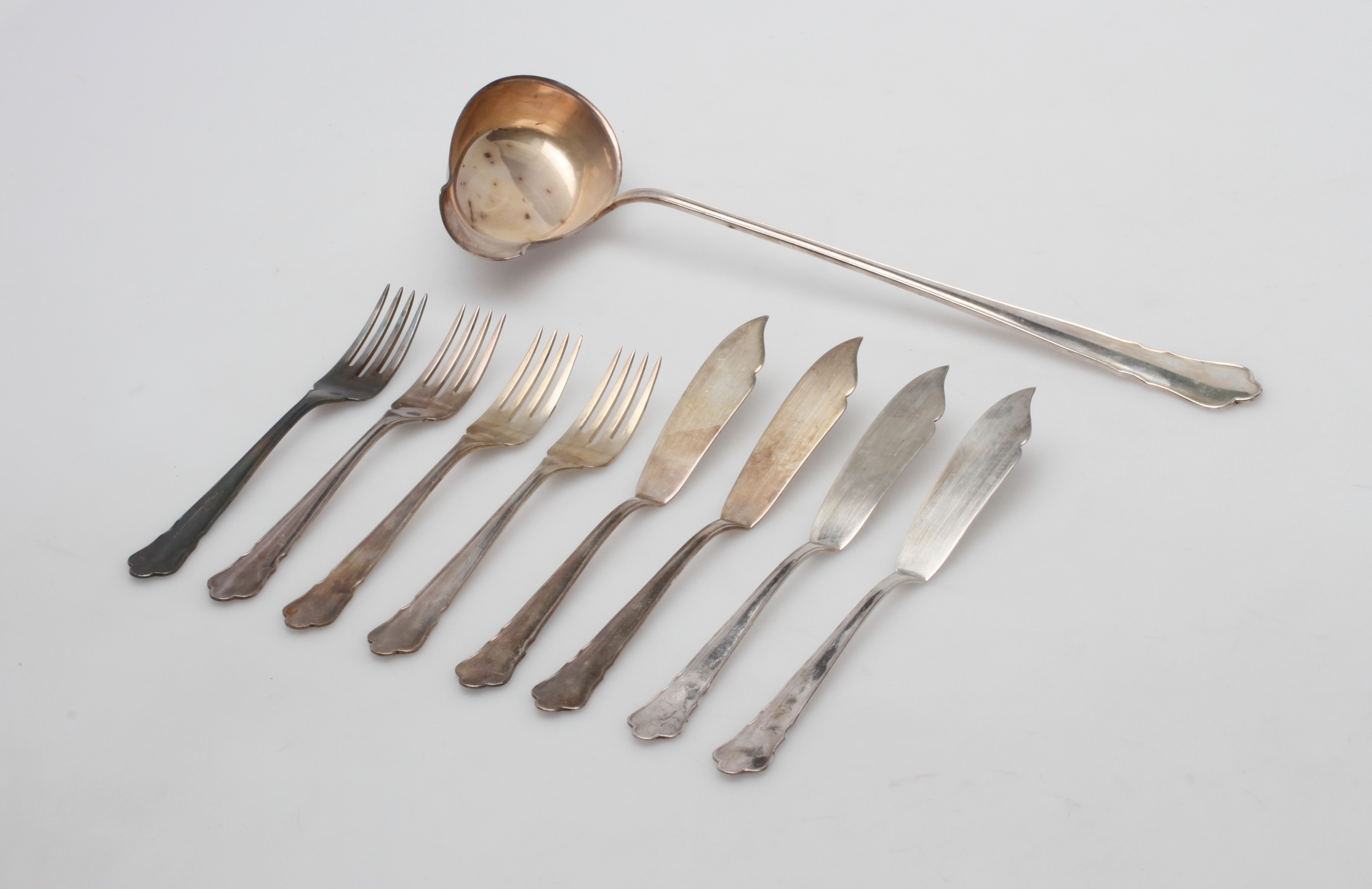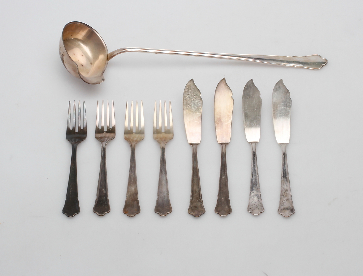 131569. BESTIK, 9 dele, nysølv, "Chippendale".