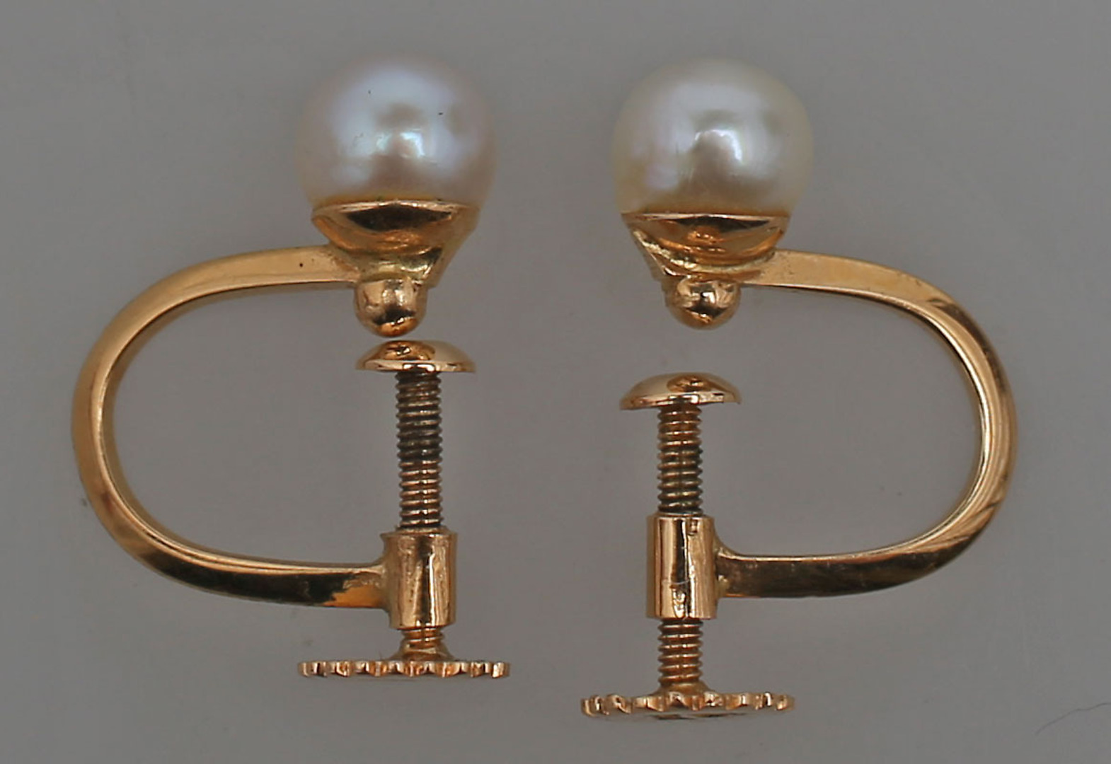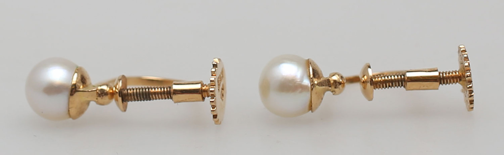 131739. PERLE ØRRINGE, et par, rødguld, 18K.