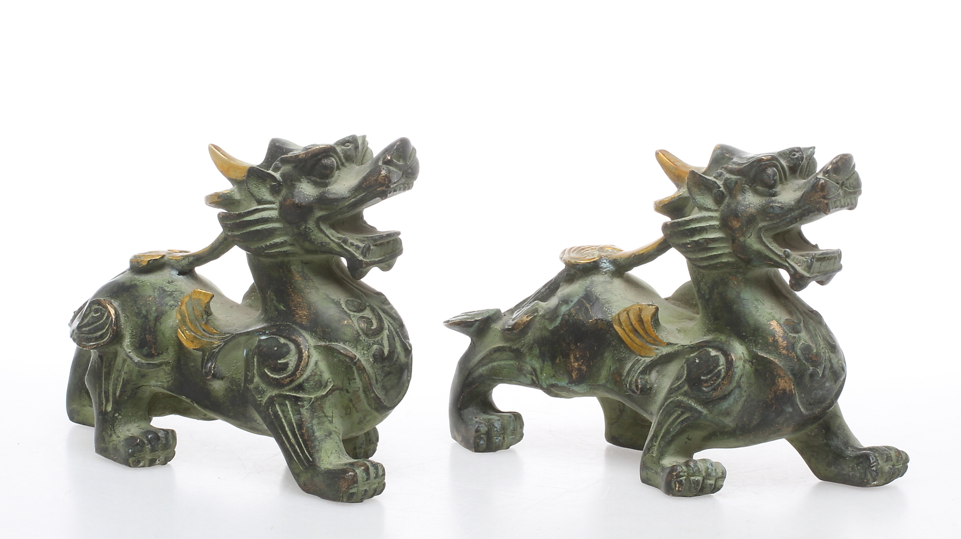 131759. FIGURER, 2 stk, drager, bronze, Kina.