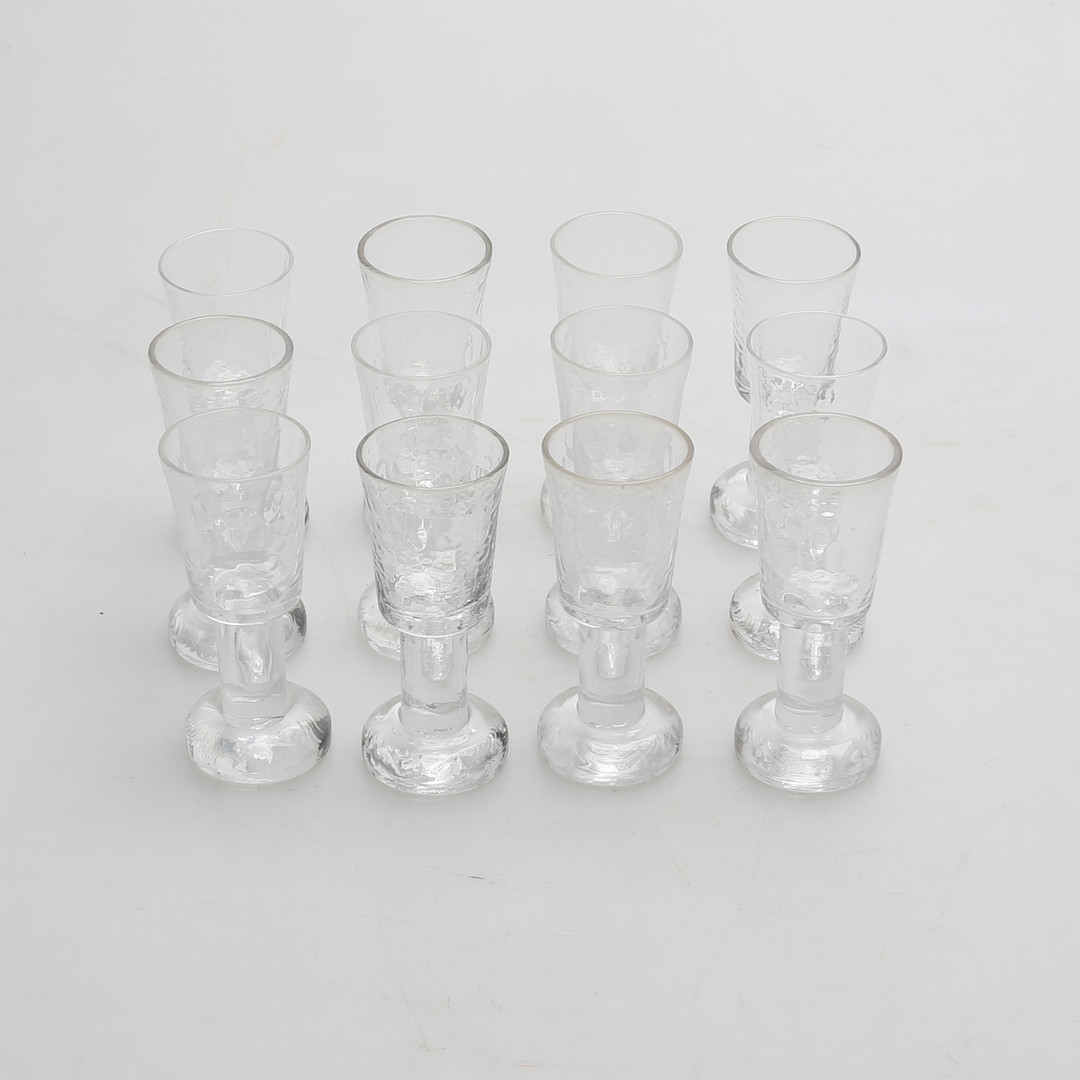 1322536. GÖRAN WÄRFF. SNAPGLAS 12 stk, Pukeberg "Rustica" 1900 tallet.
