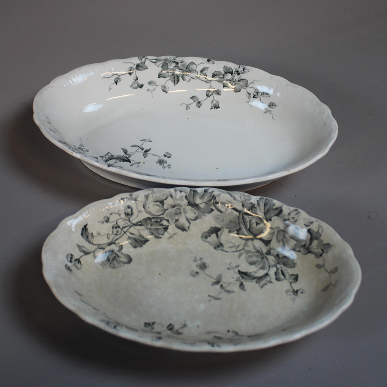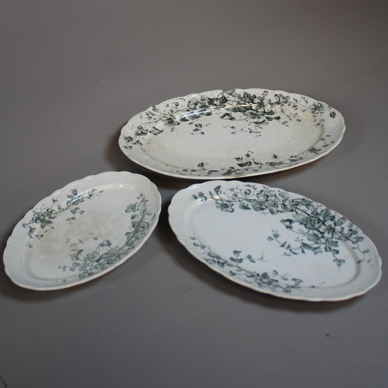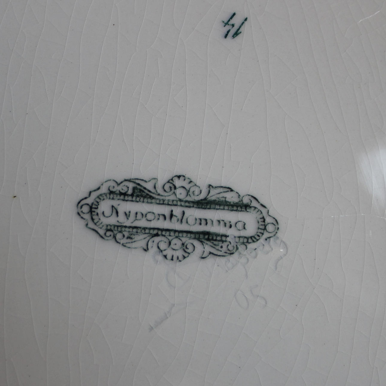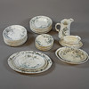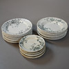 9 dybe tallerkener, 10 tallerkner, 11 middagstallerkener, 3 serveringsfade, 2 skåle, 1 kande, 1 grydeske.