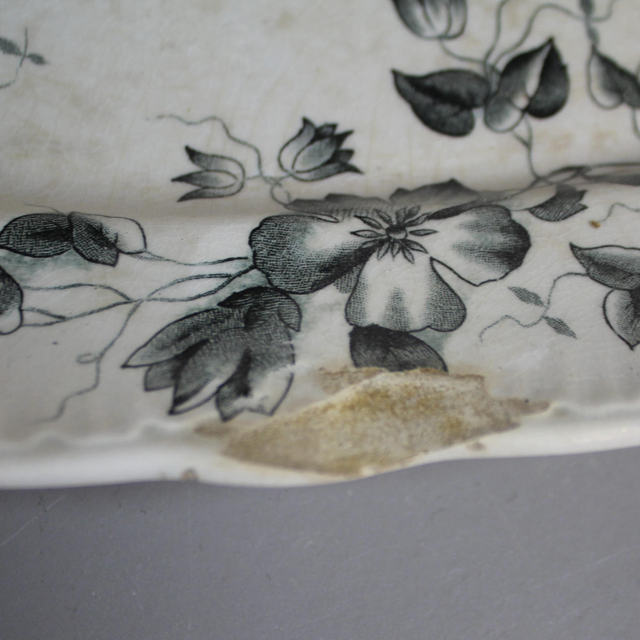 Brugs- og aldersslid. Stærk misfarvning og revner på nogle dele. Der opstår Kantstødt.