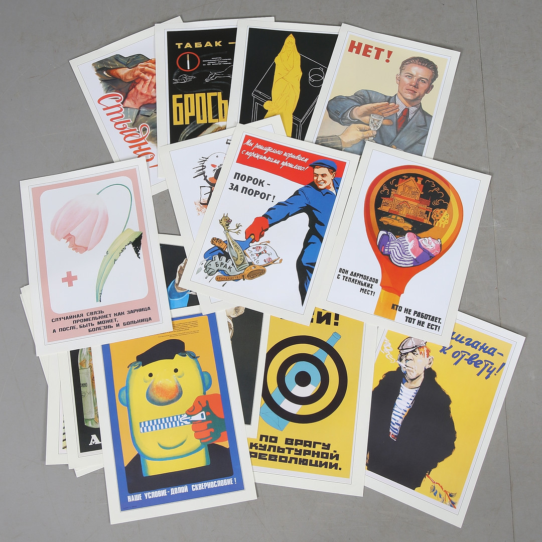 1329935. PLAKATER i MAPPE, 21 stk. Sovjetisk Propaganda, Moskva, 2005.