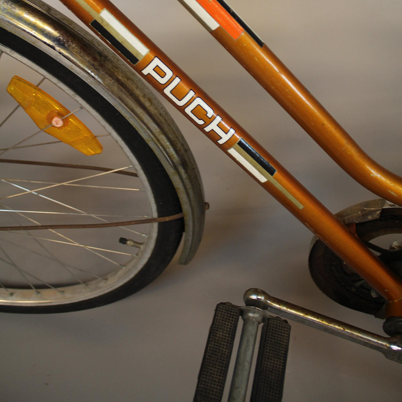 Brugsslitage. Ikke fuldstændig gennemgået. Lås mangler. Lejlighedsvis rustangreb. Baglygteglas revnet.