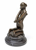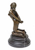 Bronzefigur af en nøgen dame, på en etageret rund fod af sort marmor, højde 22 cm.