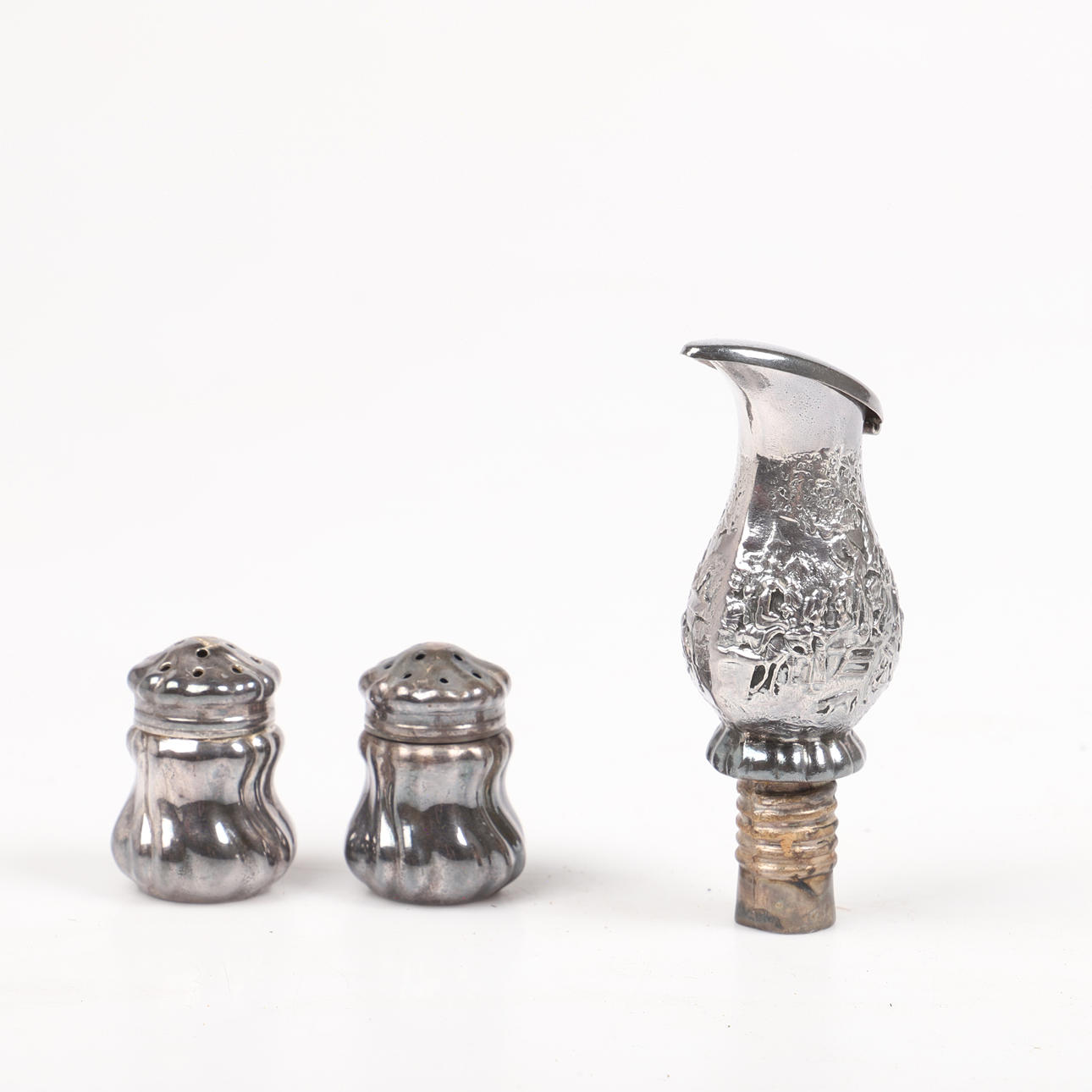1 par sølvsprinklere højde 32,5 mm 1 vinkork nysølv højde 76 mm.
