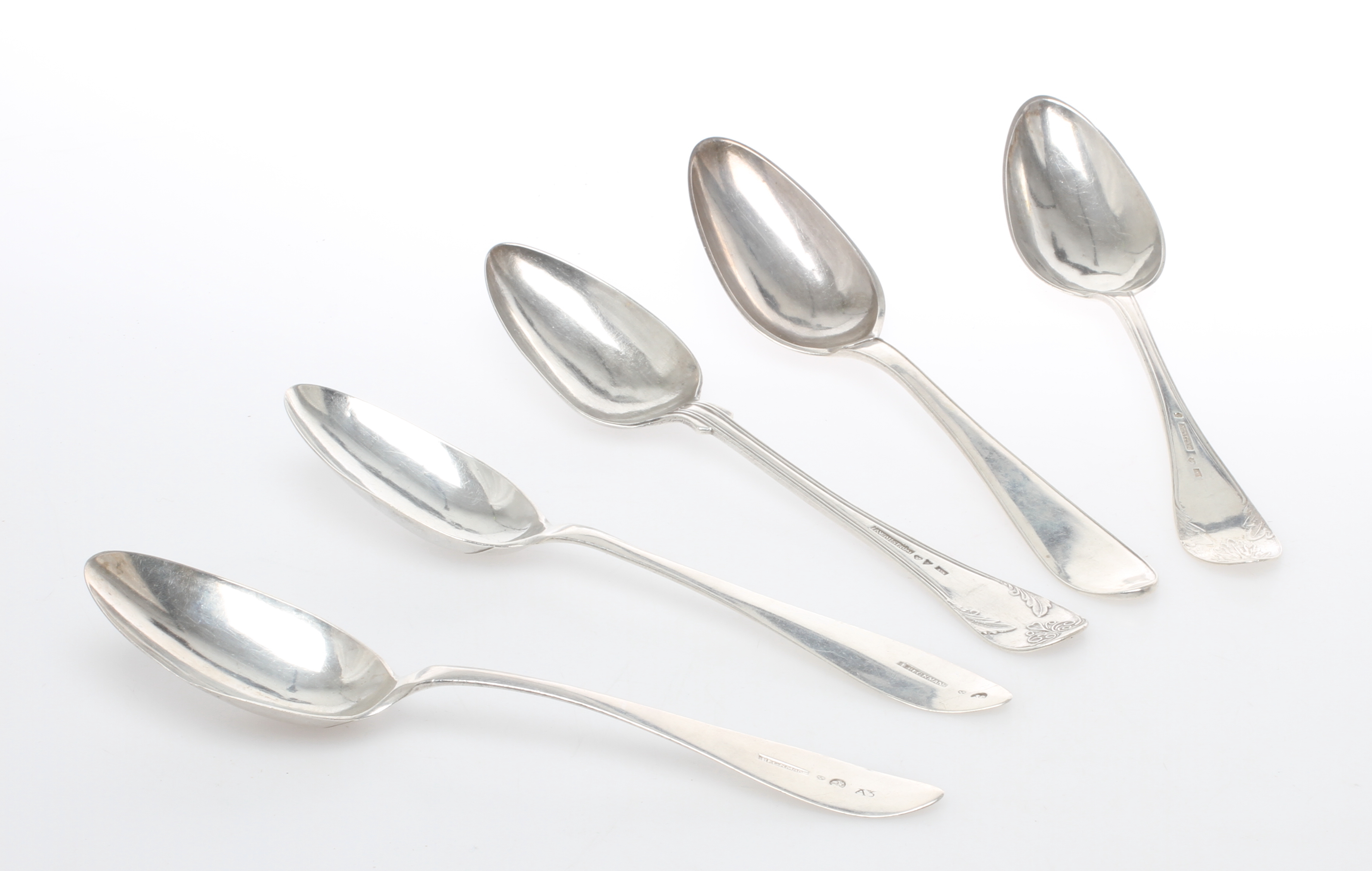 133780. SKEER, 5 stk, sølv, 1800-tallet.