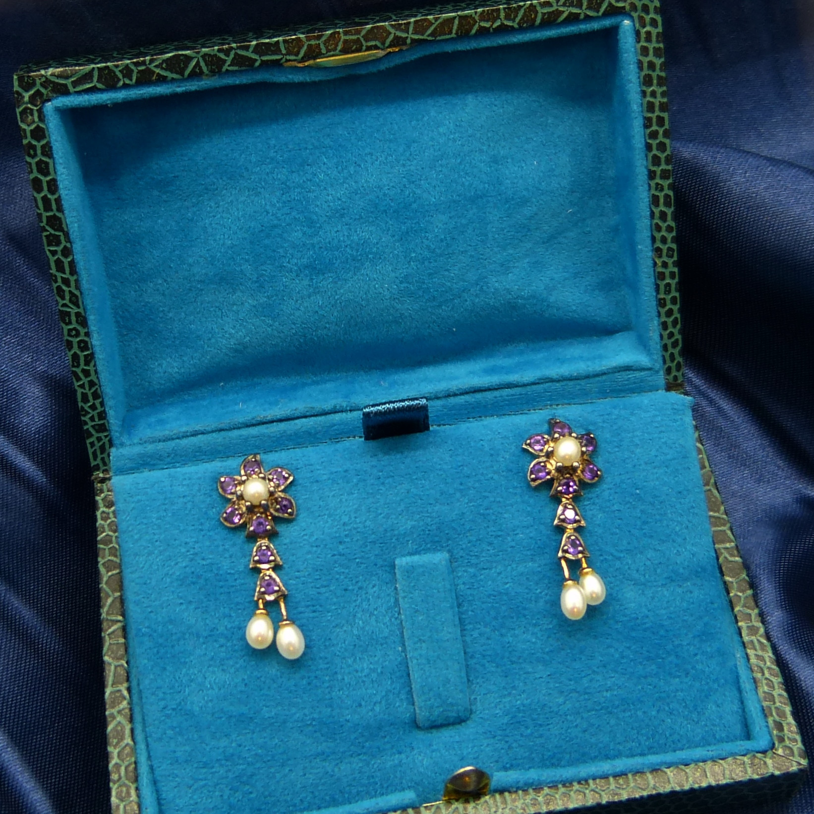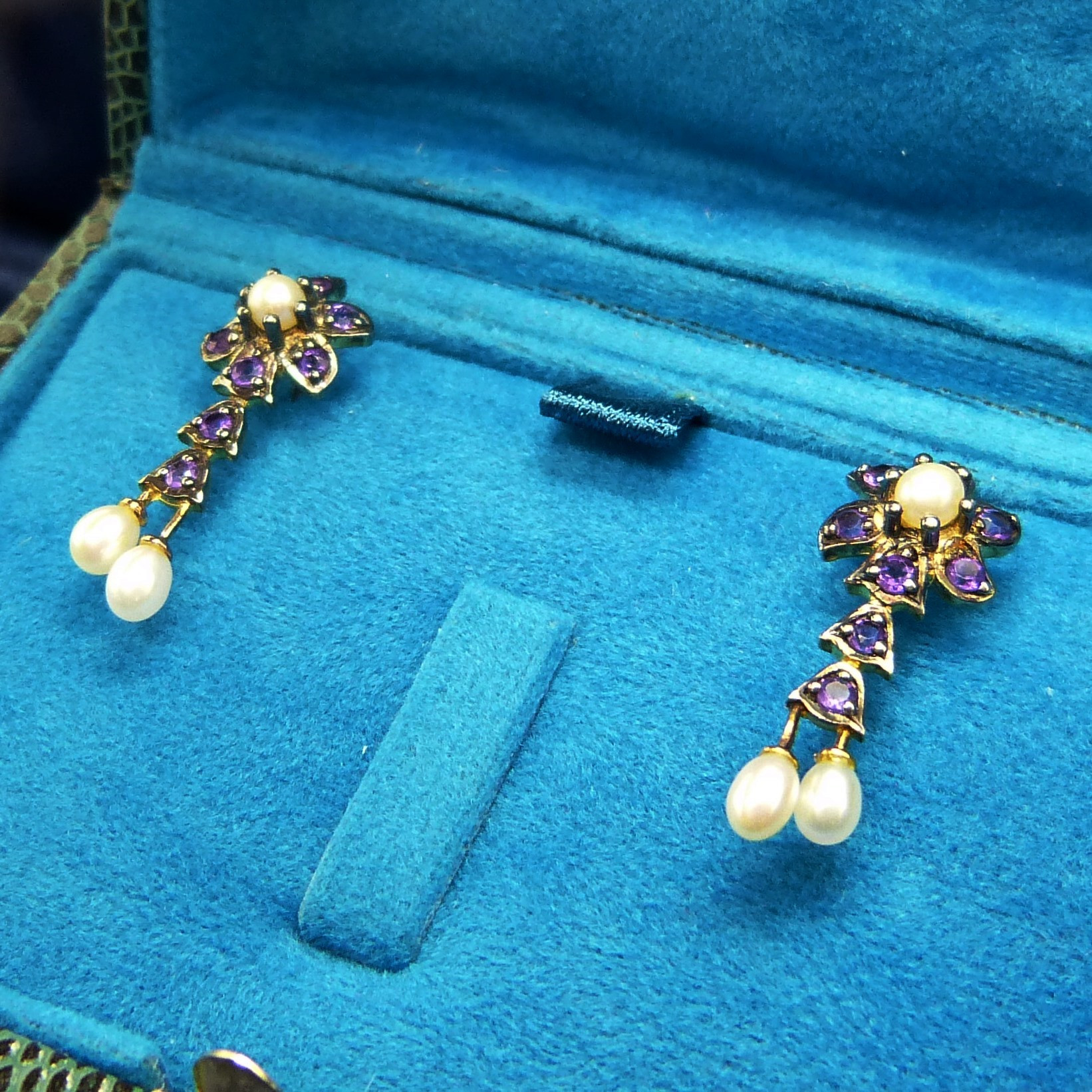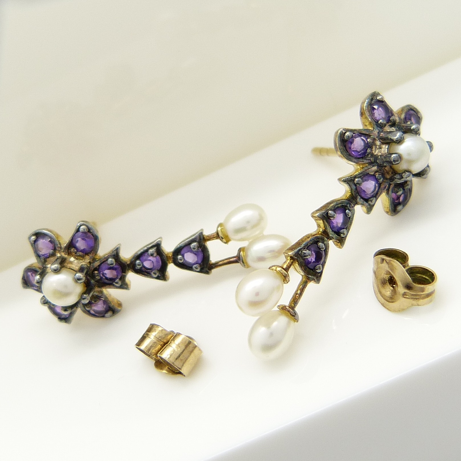 1339803. AMETHYST & PERLE DROPE ØRERINGE.