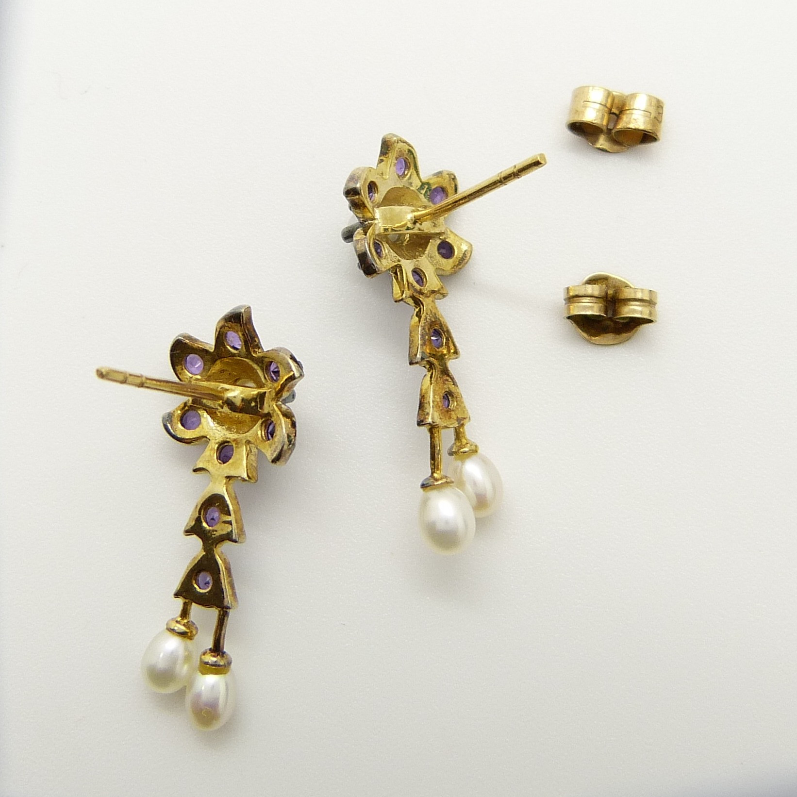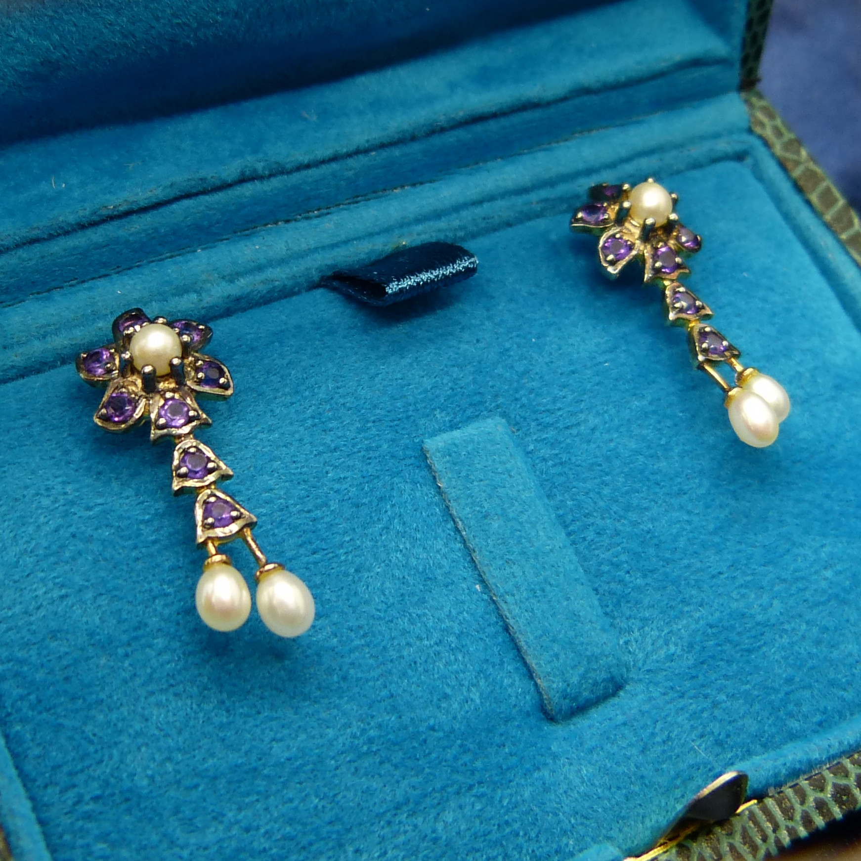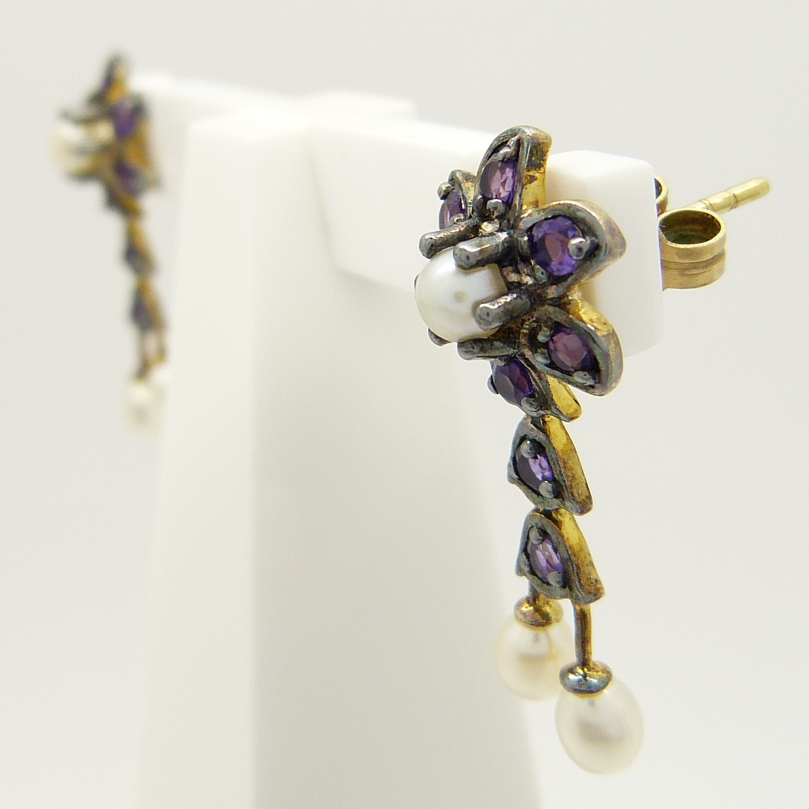 1339803. AMETHYST & PERLE DROPE ØRERINGE.