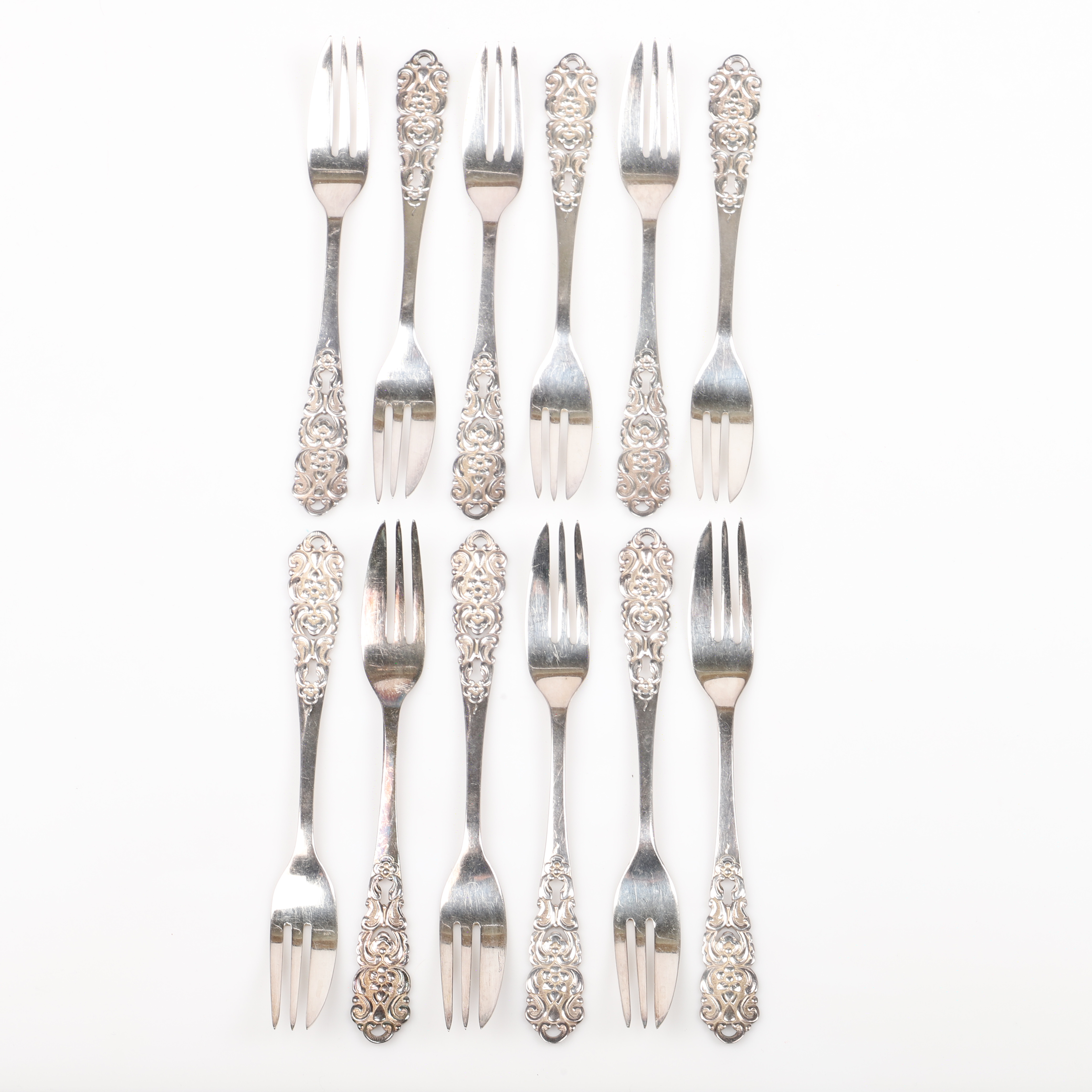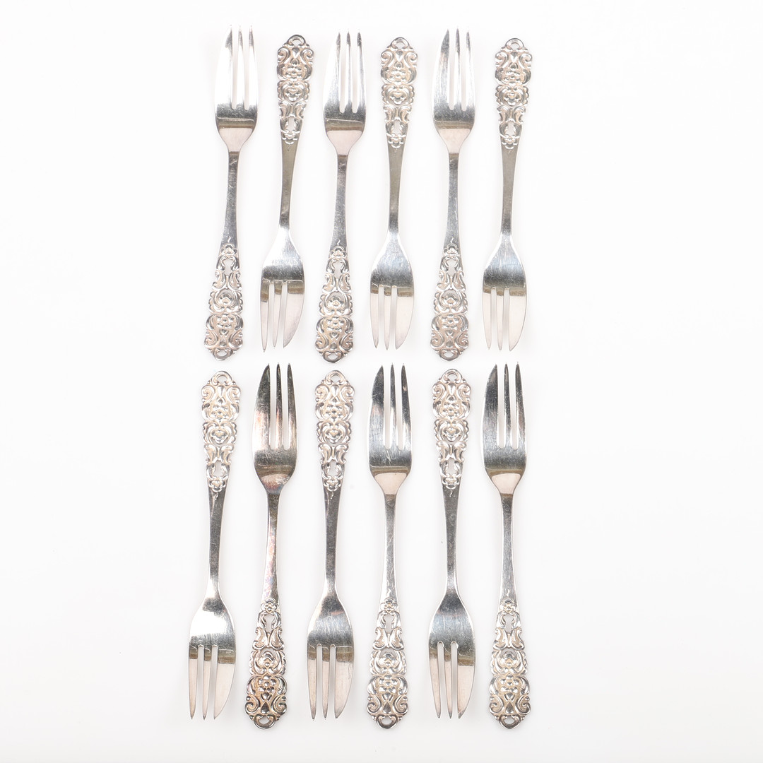 1341570. KAGEGAFLER, 12 dele, nysølv.