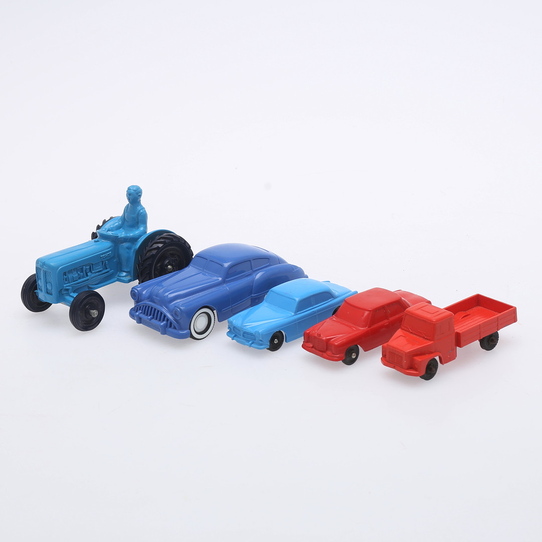 1350328. PLASTBILER, 5 stk., Galanite, 1900-tallet.