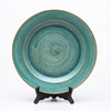 Stentøj, grøn glasur med malet gulddekoration, diameter: 30,5 cm.