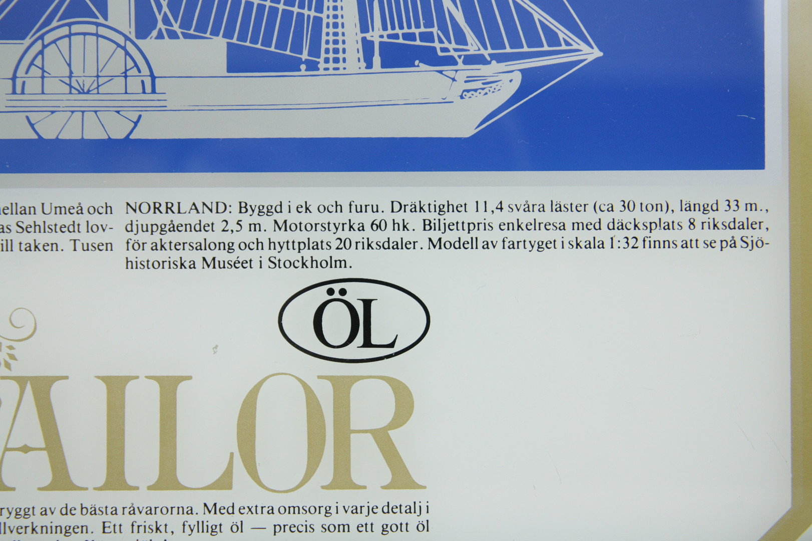 1356172. SKILT, "Sailor" Beer, Till-Bryggerier, 1900-tallet.