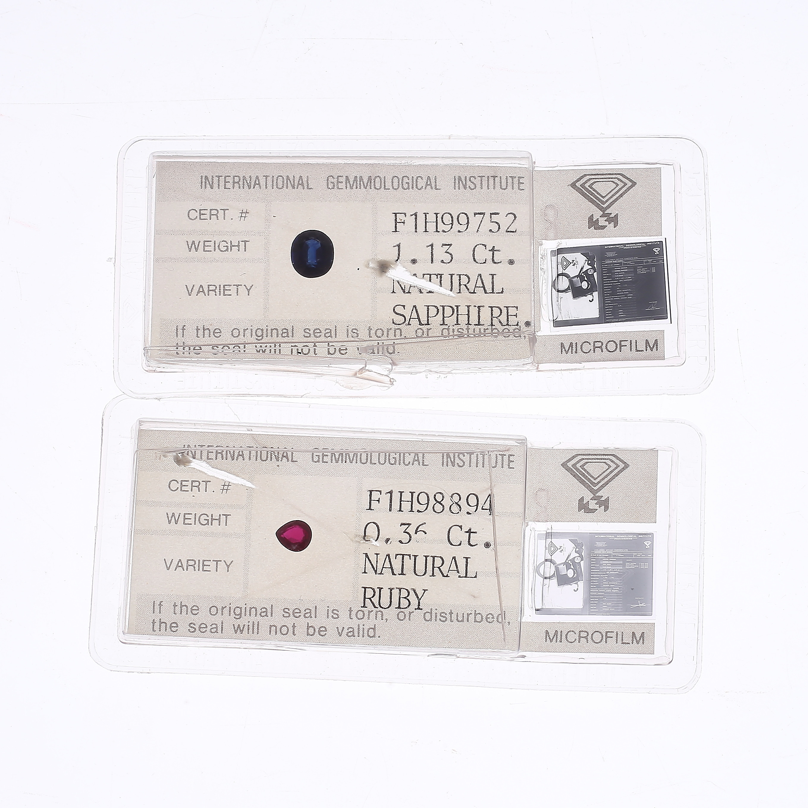 1364742. GEMS, 2 stk, rubin, safir.