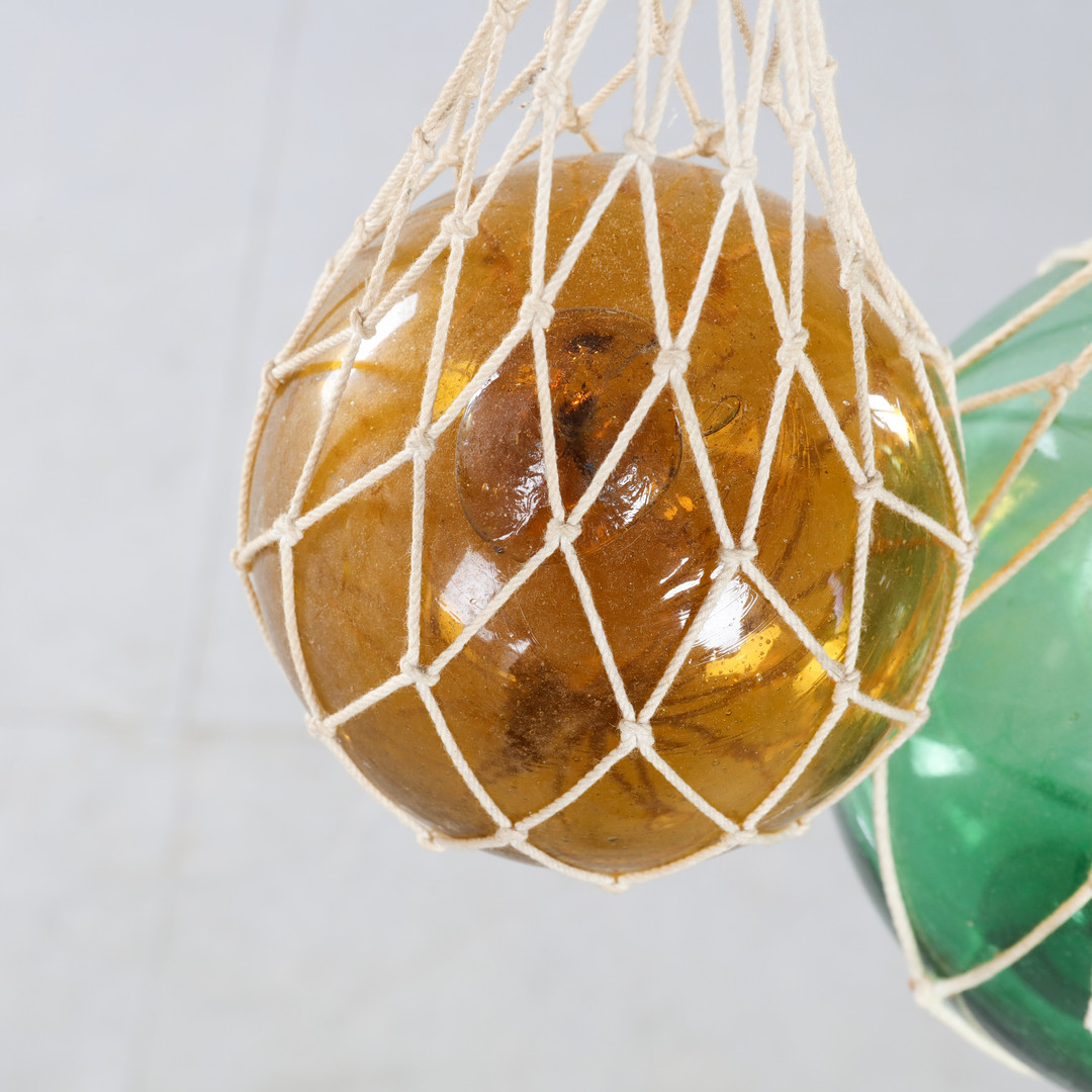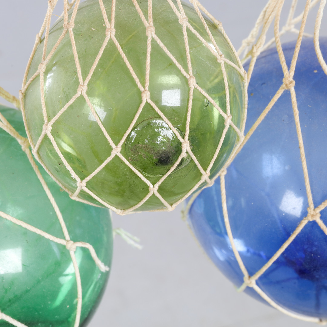 1366886. GLASKUGLER, med net, 5 stk, 1900-tallet.