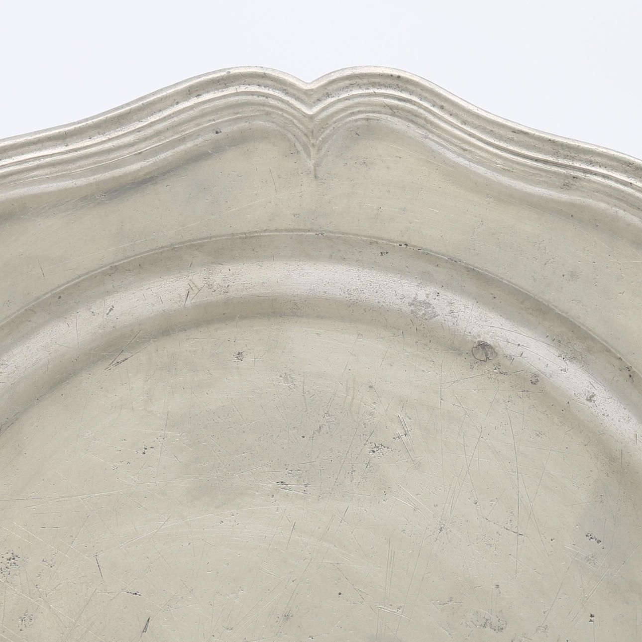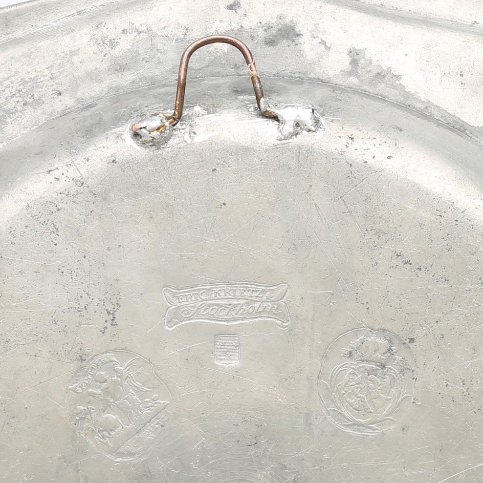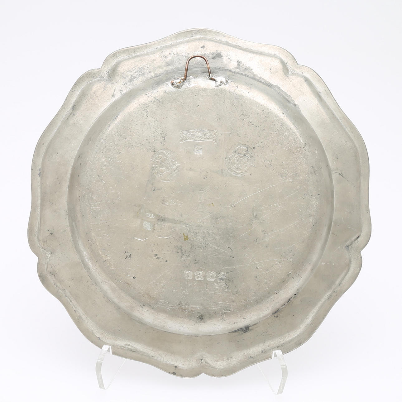 Firestemplet tin, Stockholm 1769, mesteren aktiv 1753-1795, diameter 28 cm.