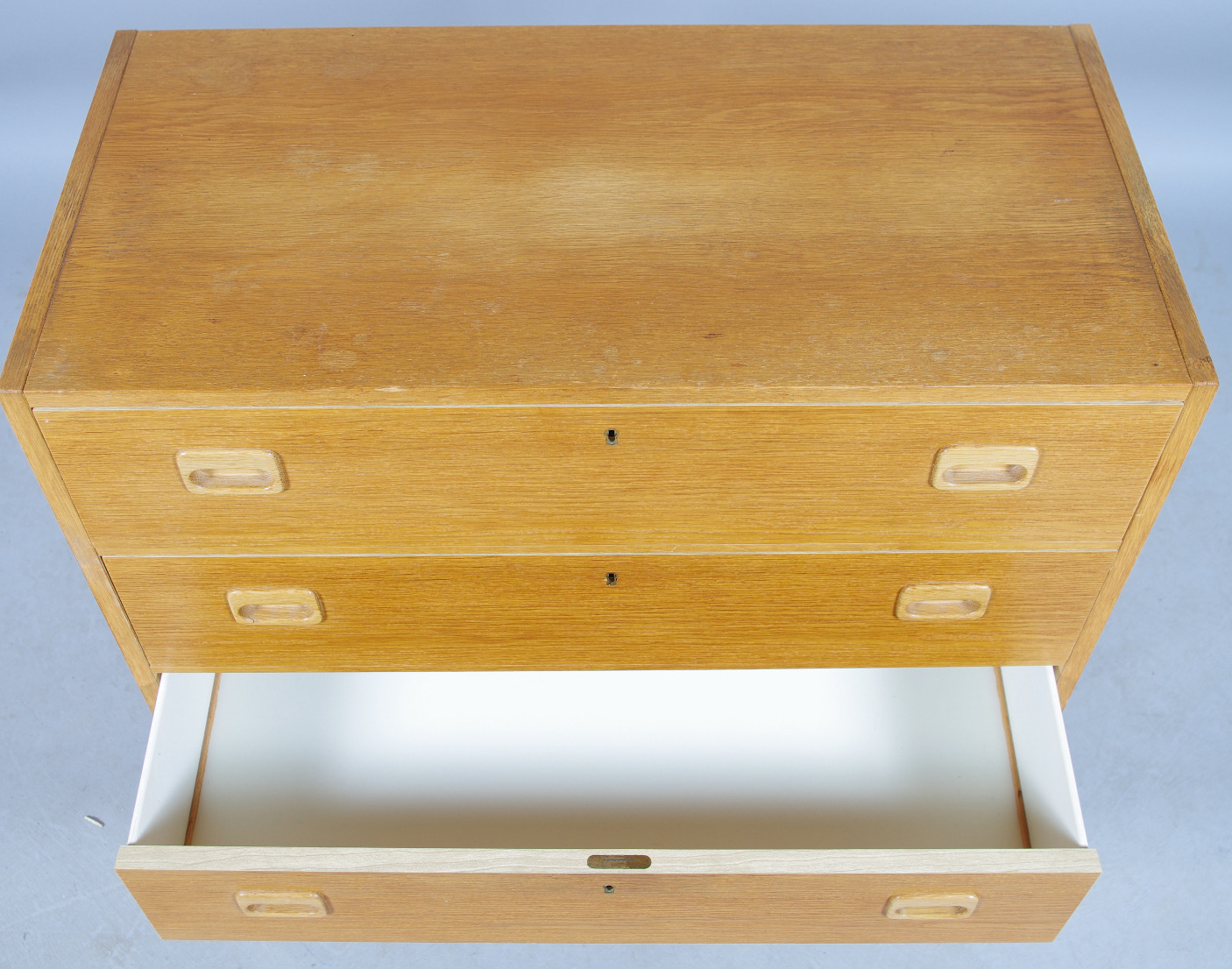 136796. Kommode, 3-boks, eg, 1960'erne.
