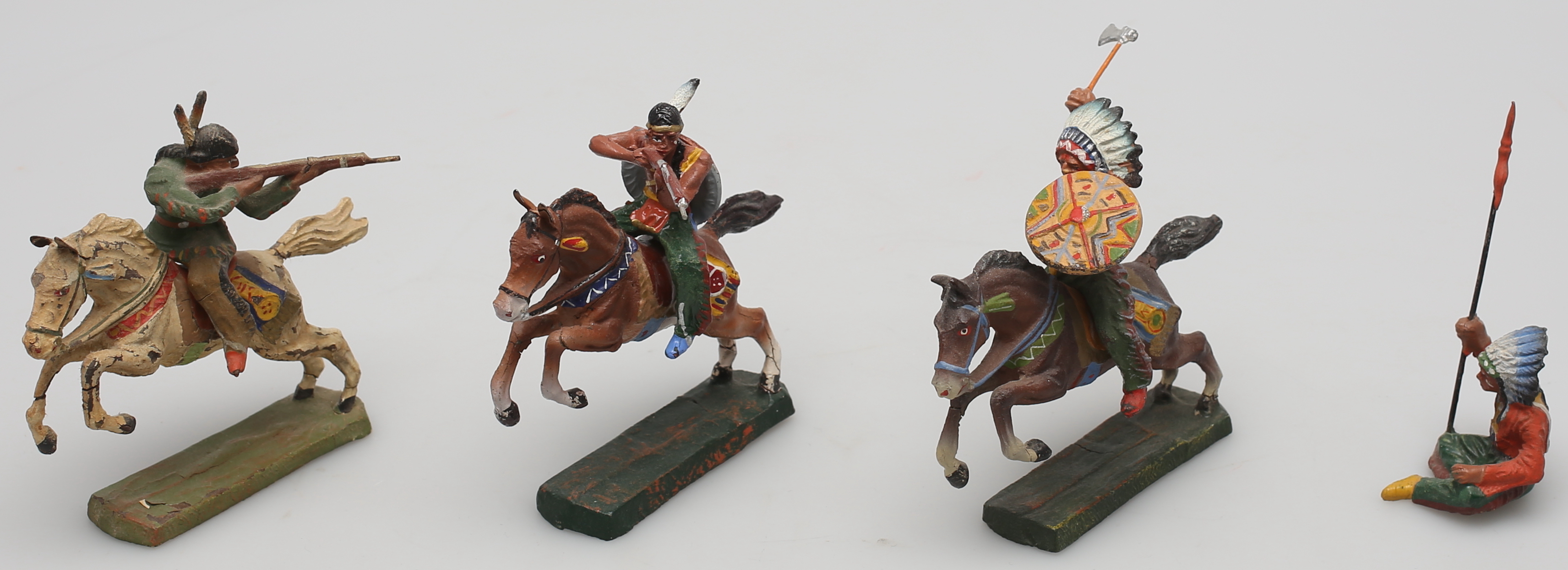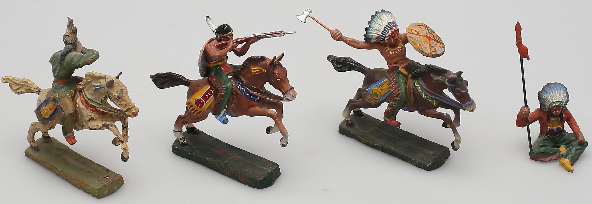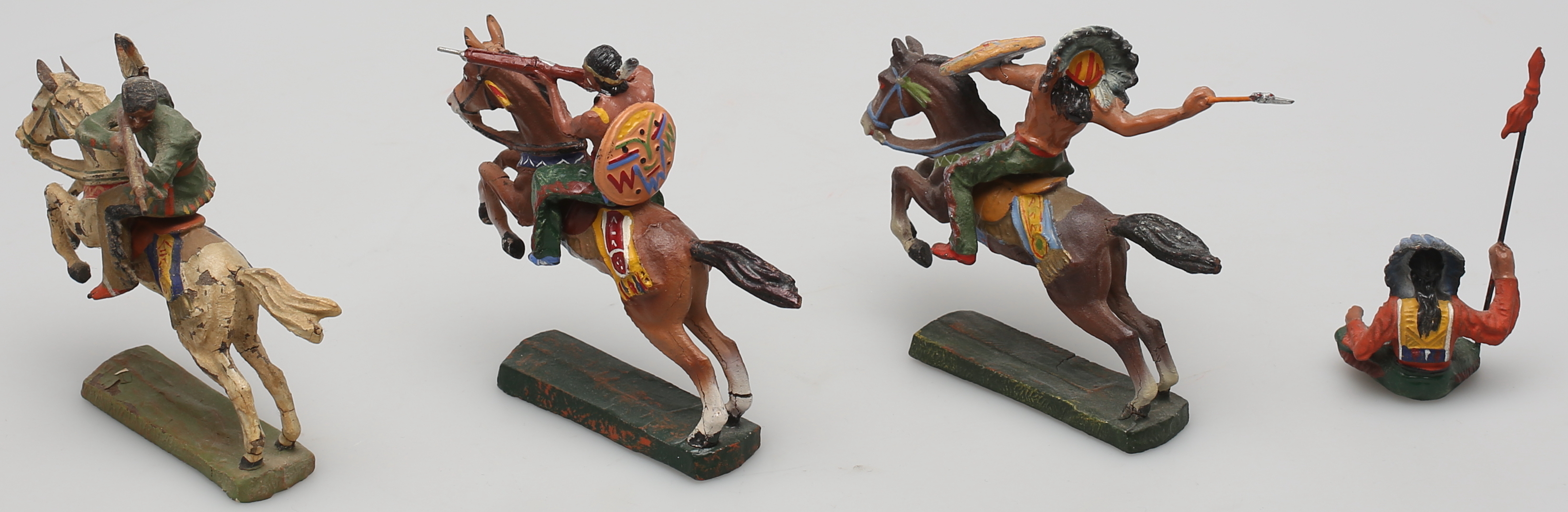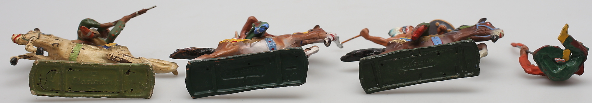 136819. INDISK RYTTER OG SIDENDE CHEF (4). Mærket Elastolin.