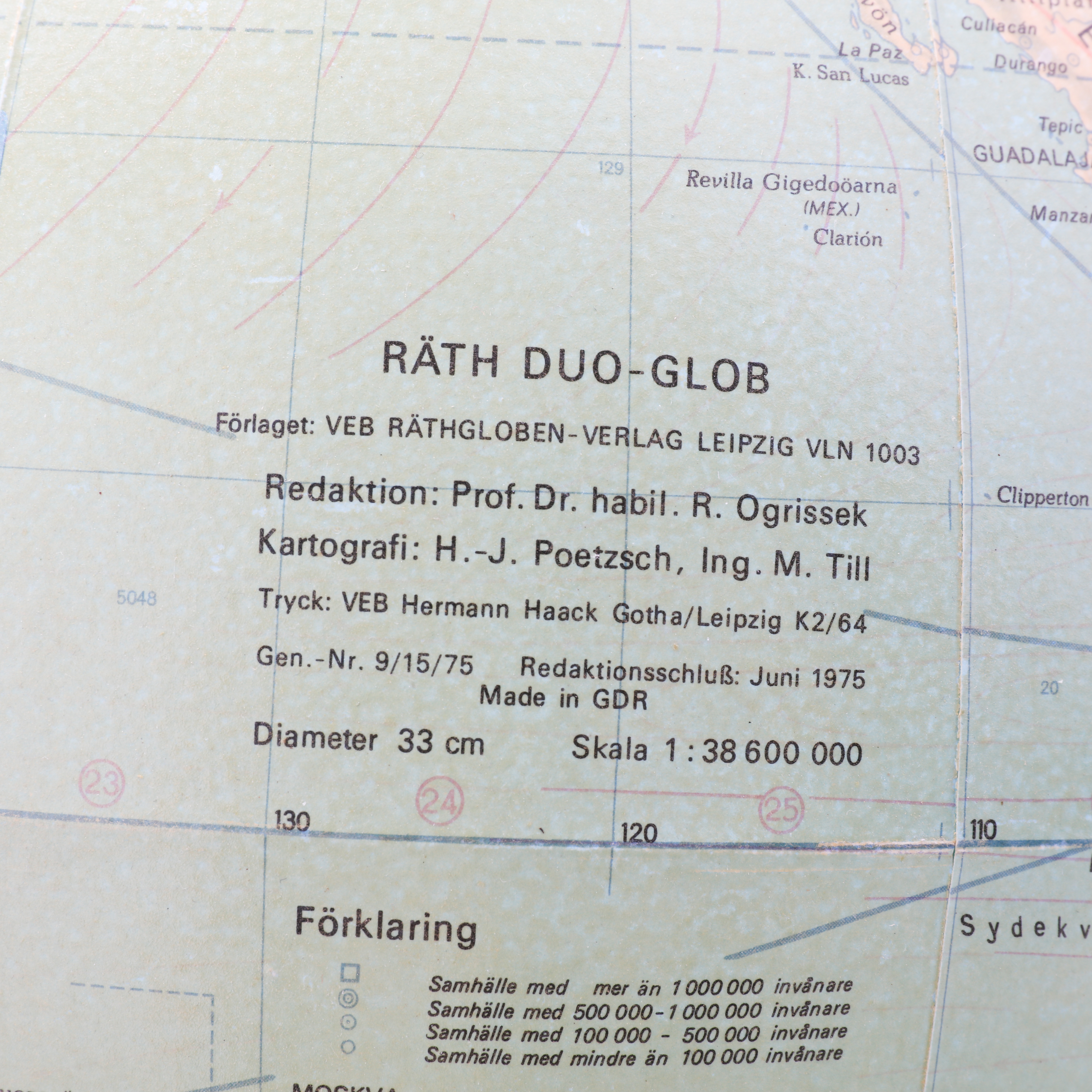 1372368. EARTH GLOBE, Räth Duo-Globe, 1972.