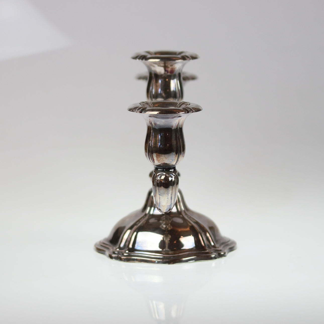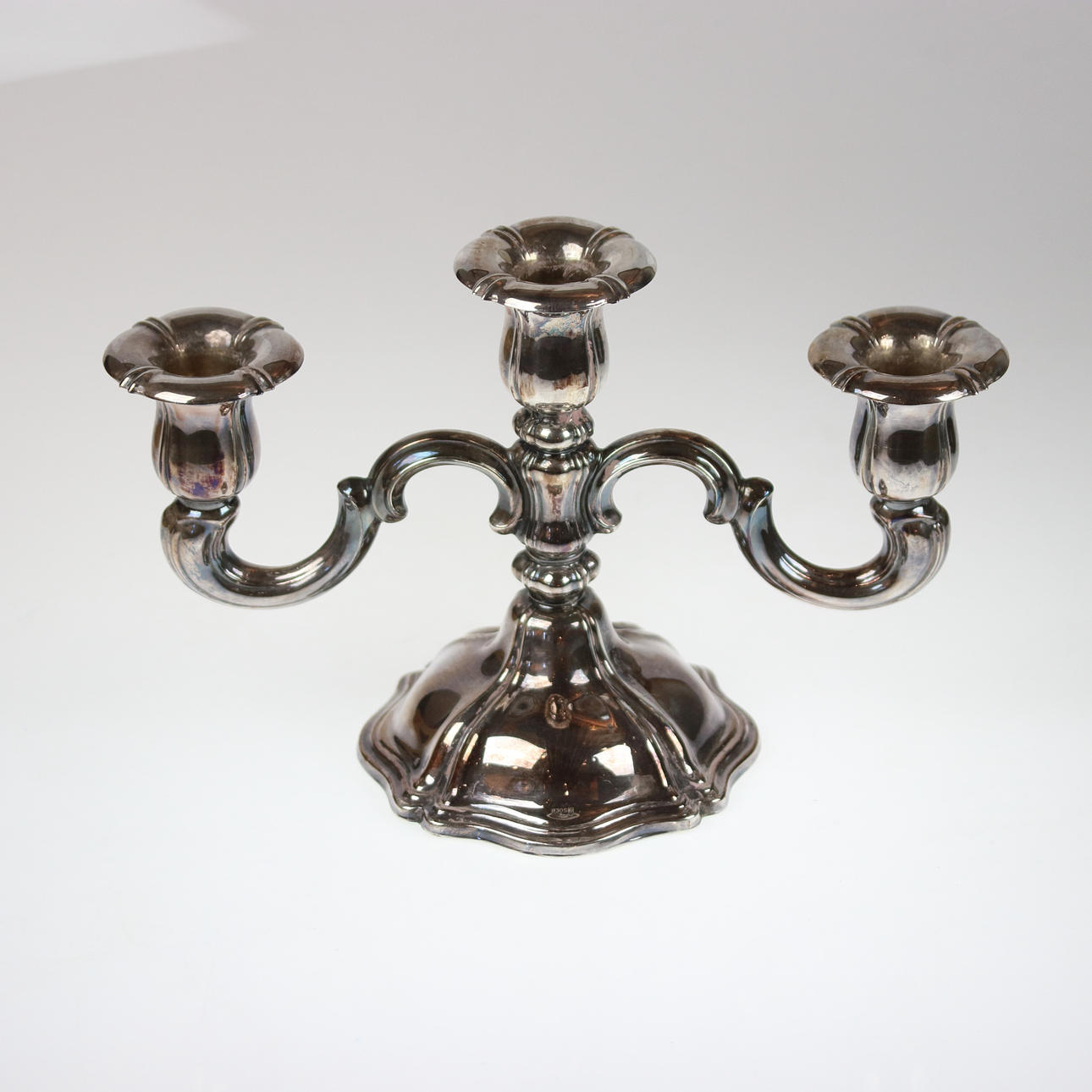 Lysestage, trearmet, sølv 830, rokoko stil.
