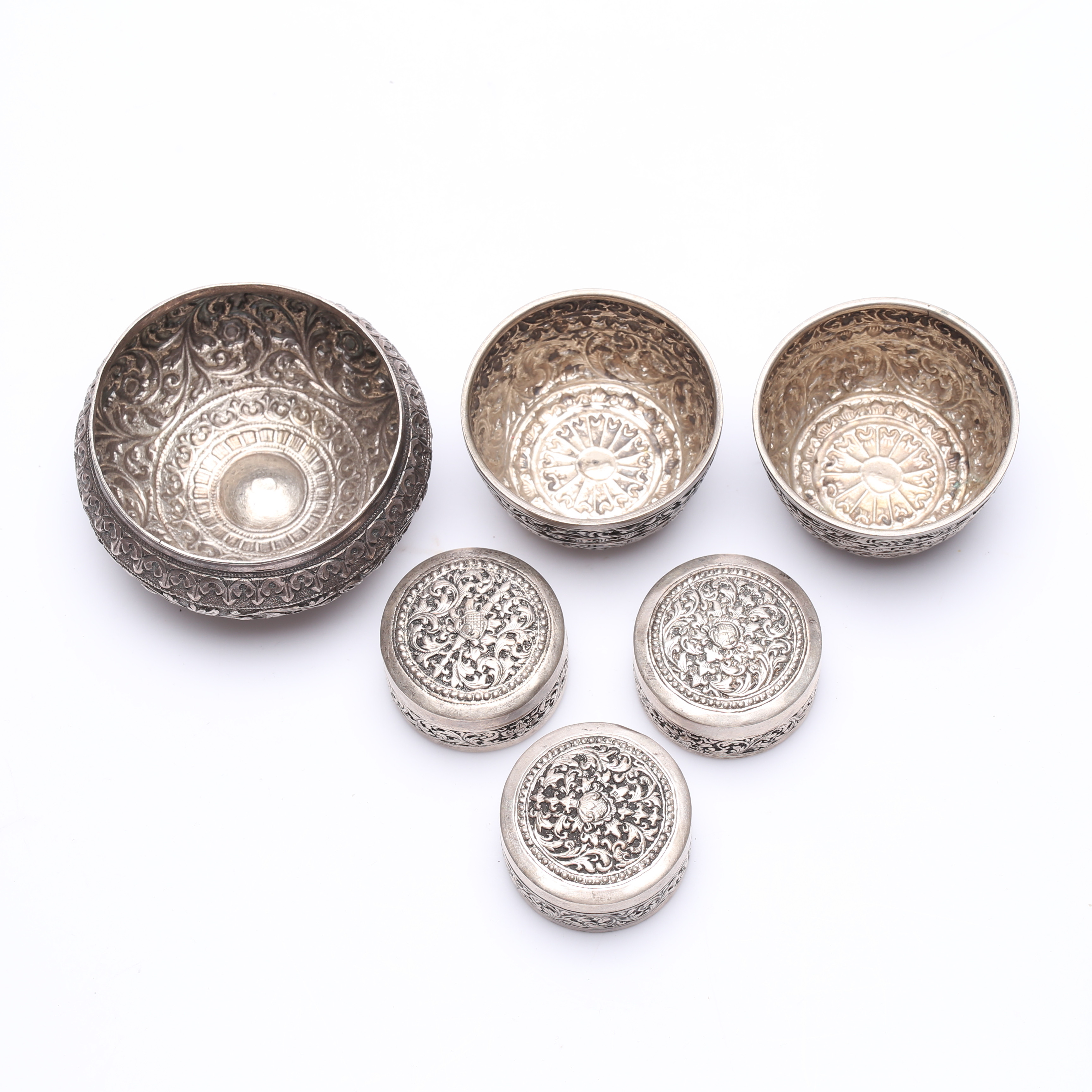 1374731. SØLVGENSTANDE, 6 dele, orientalsk, vægt ca. 150,2 gram.