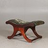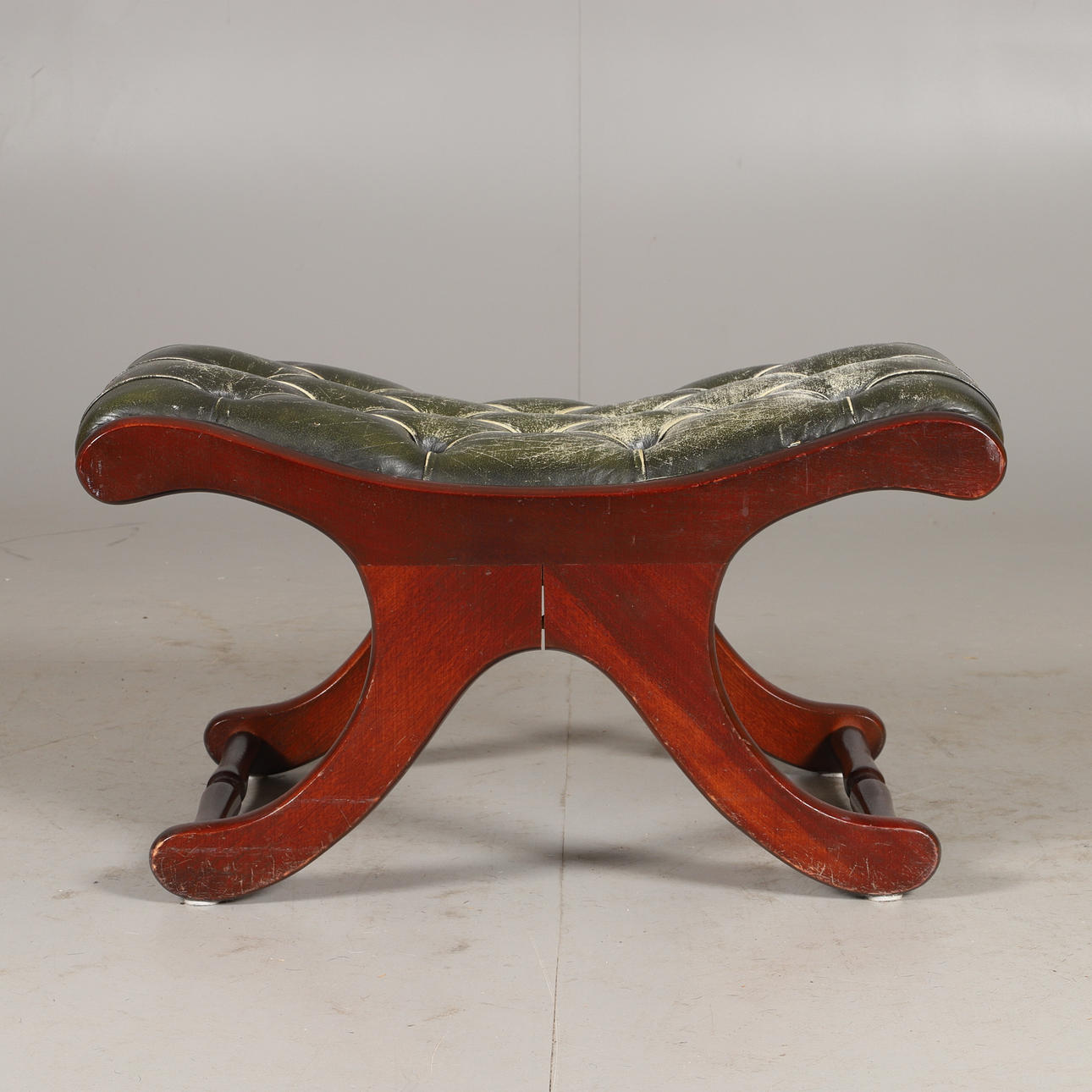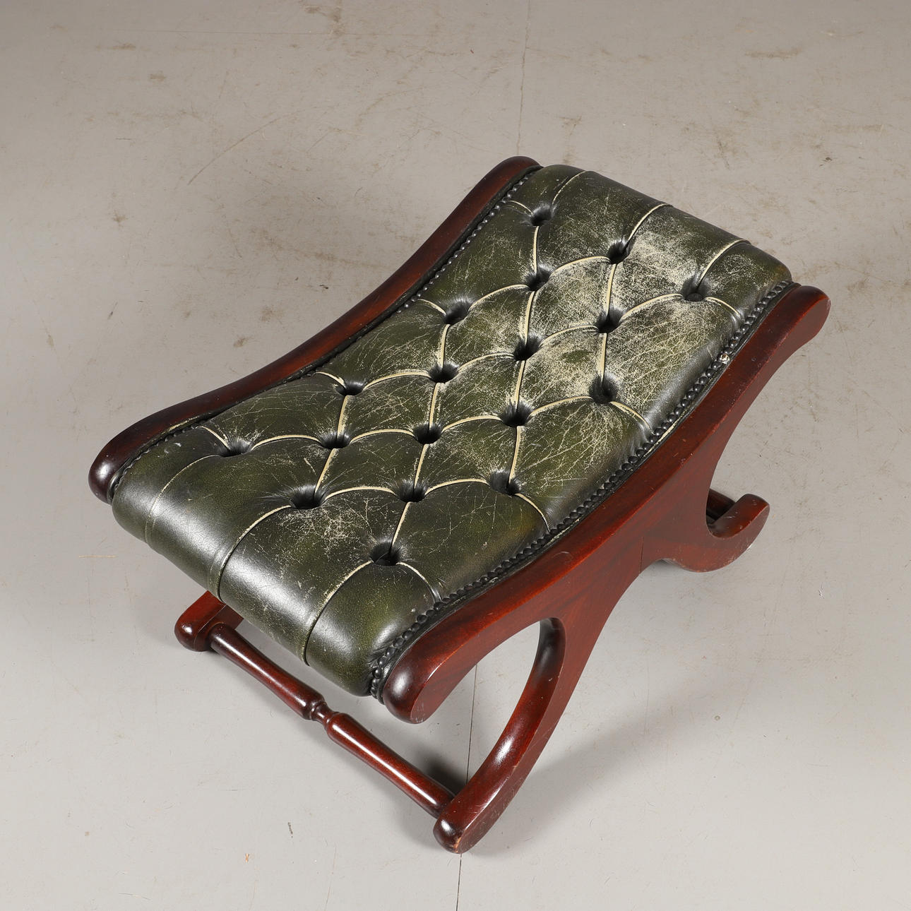 1377205. Taburet, mahogni/grønt læder, engelsk stil.