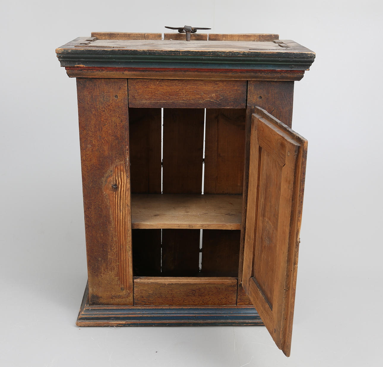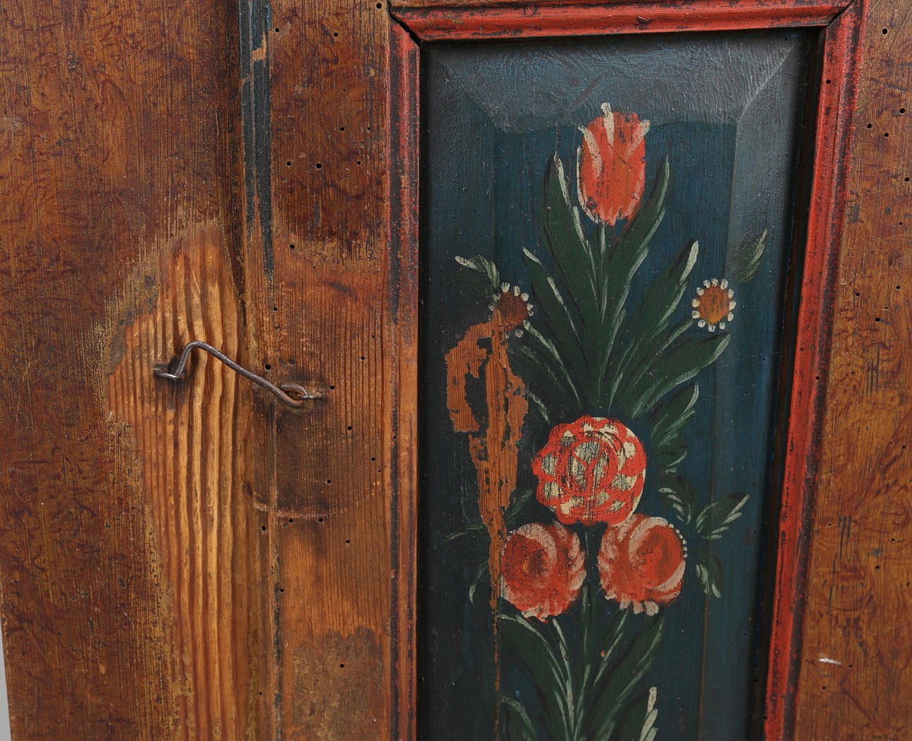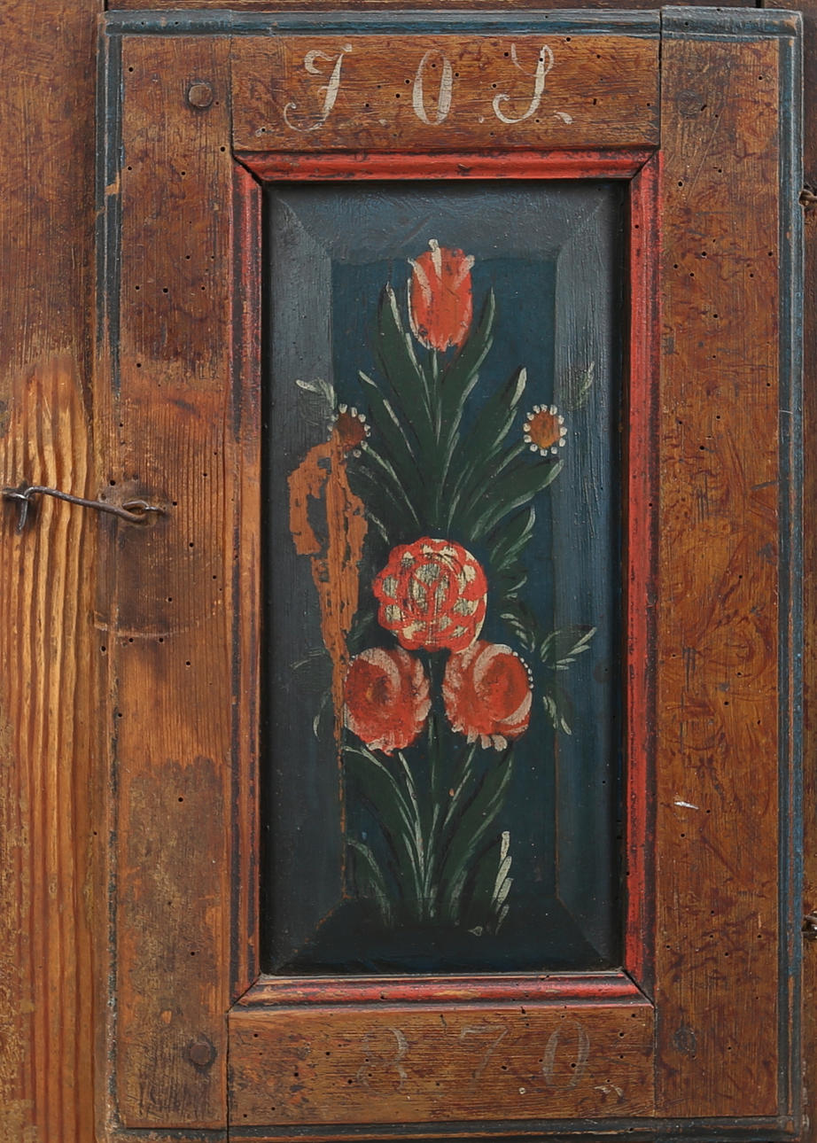 Malet træ. Åremalede og blomstermotiver. 2 hylder indeni.