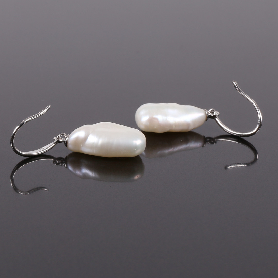 1378173. ØRERINGE, sølv, biwa barokperler.
