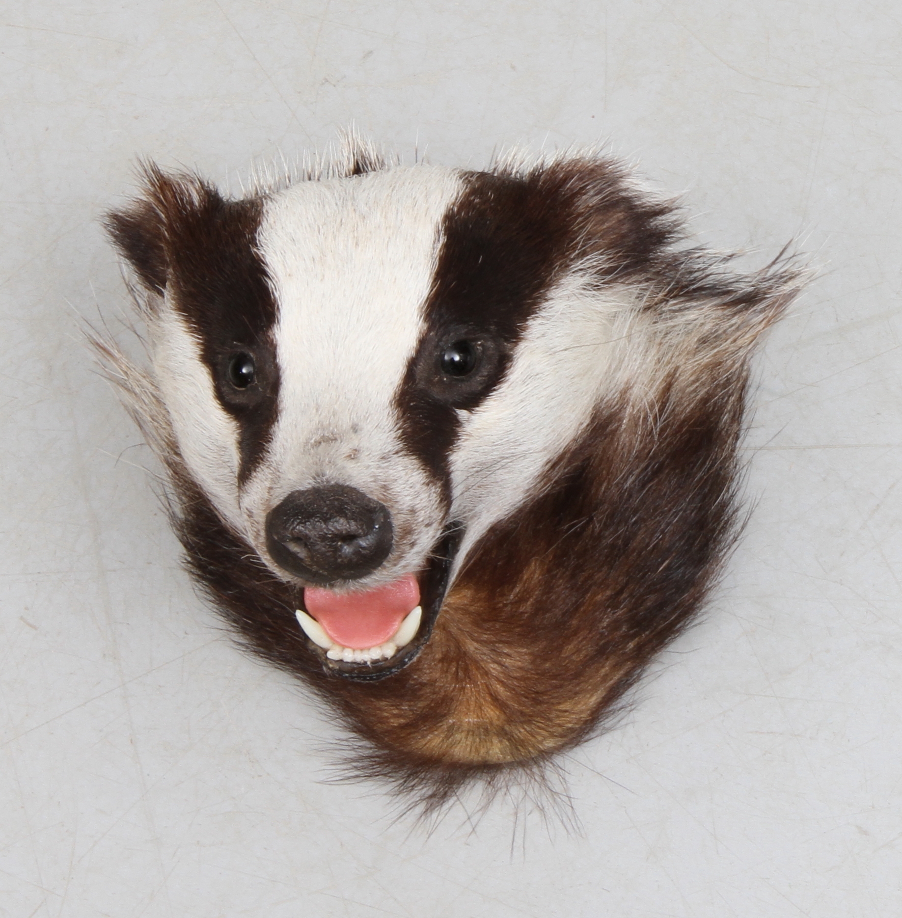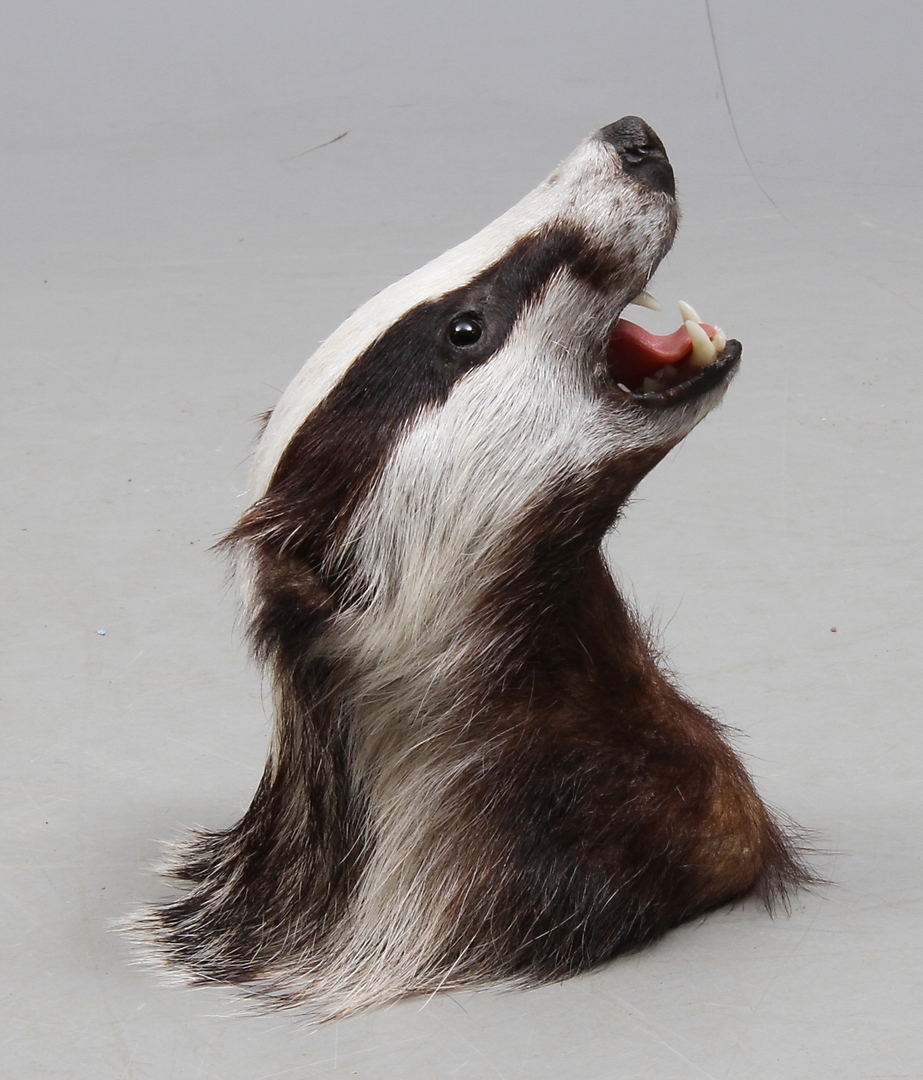 138054. JAGTROFÆ, grævlingehoved, udstoppet.