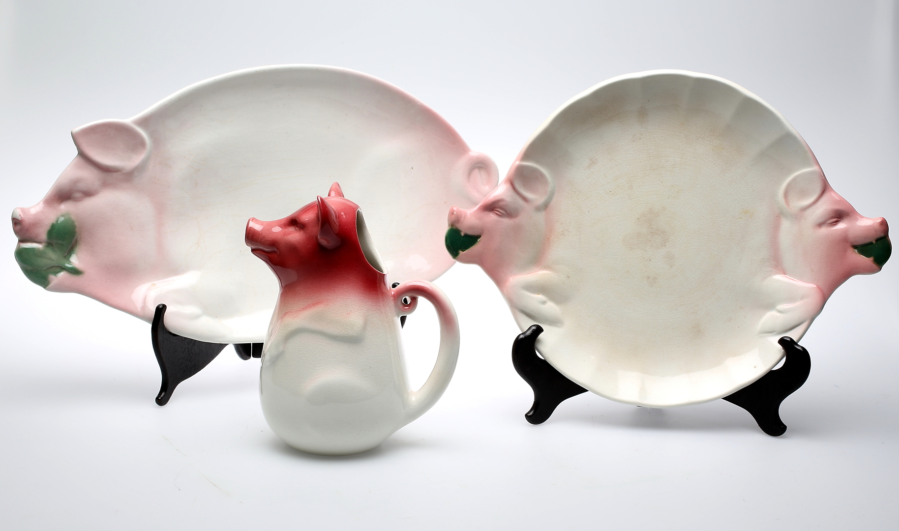 138144. SVINEFAD 2 stk, og GRYDE, Rörstrand 1800-tallet.
