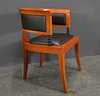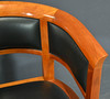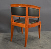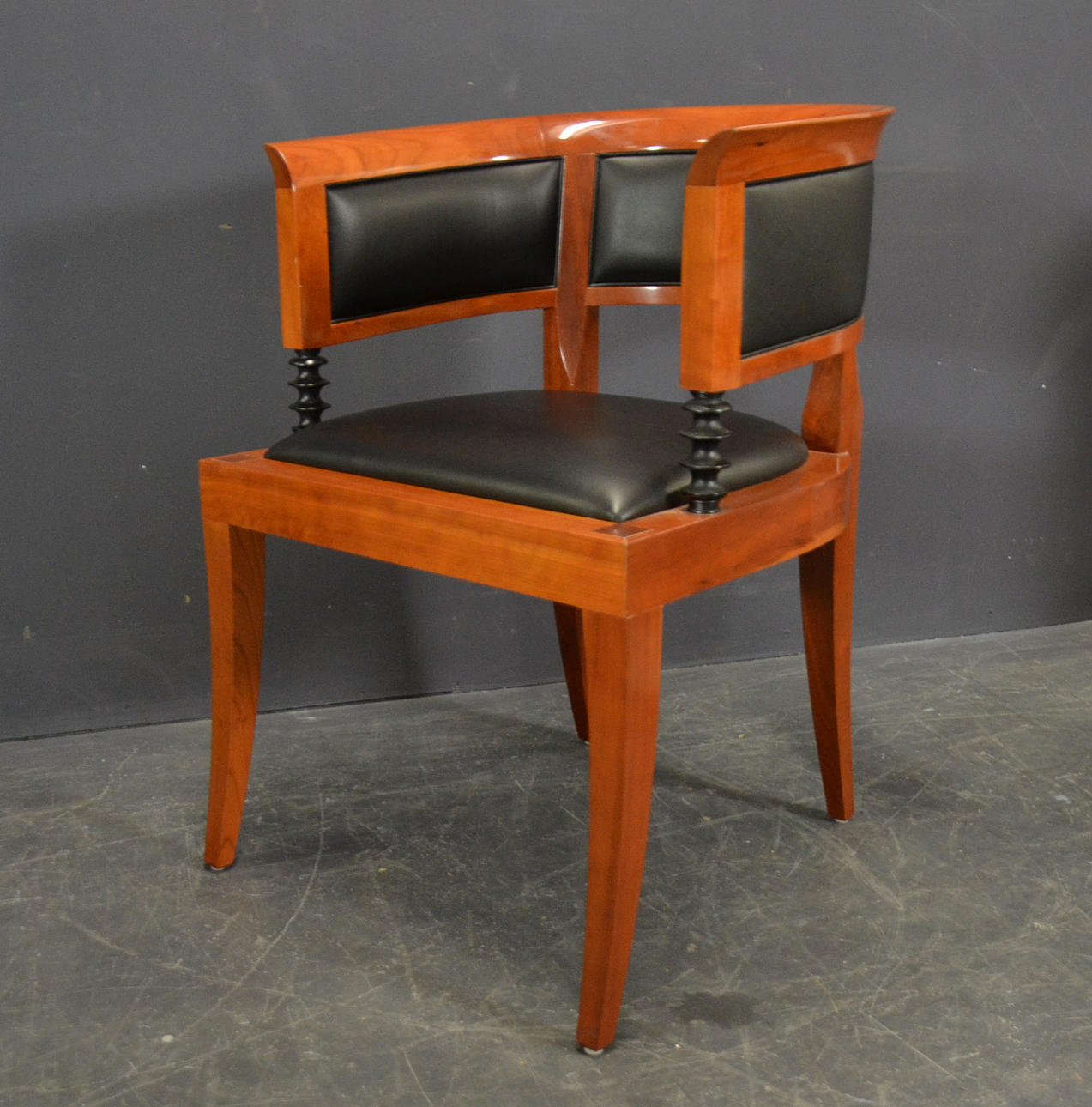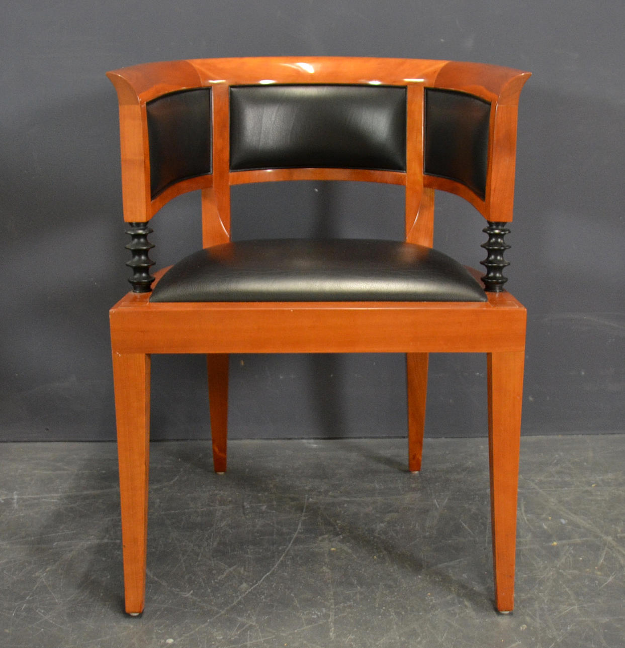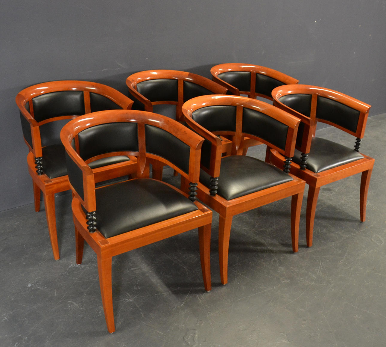 Fremstillet af massivt kirsebærtræ, stole betrukket med sort læder.