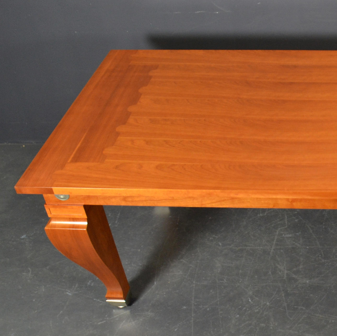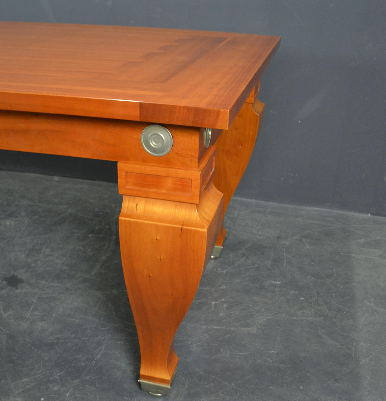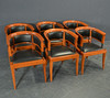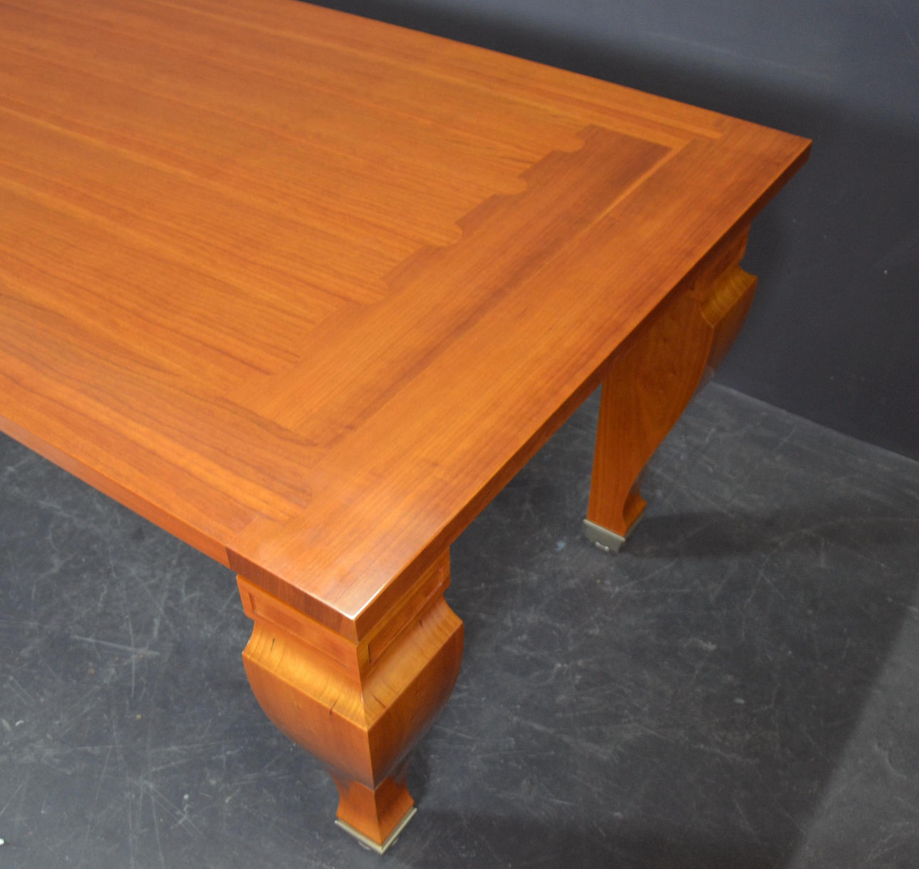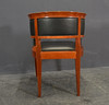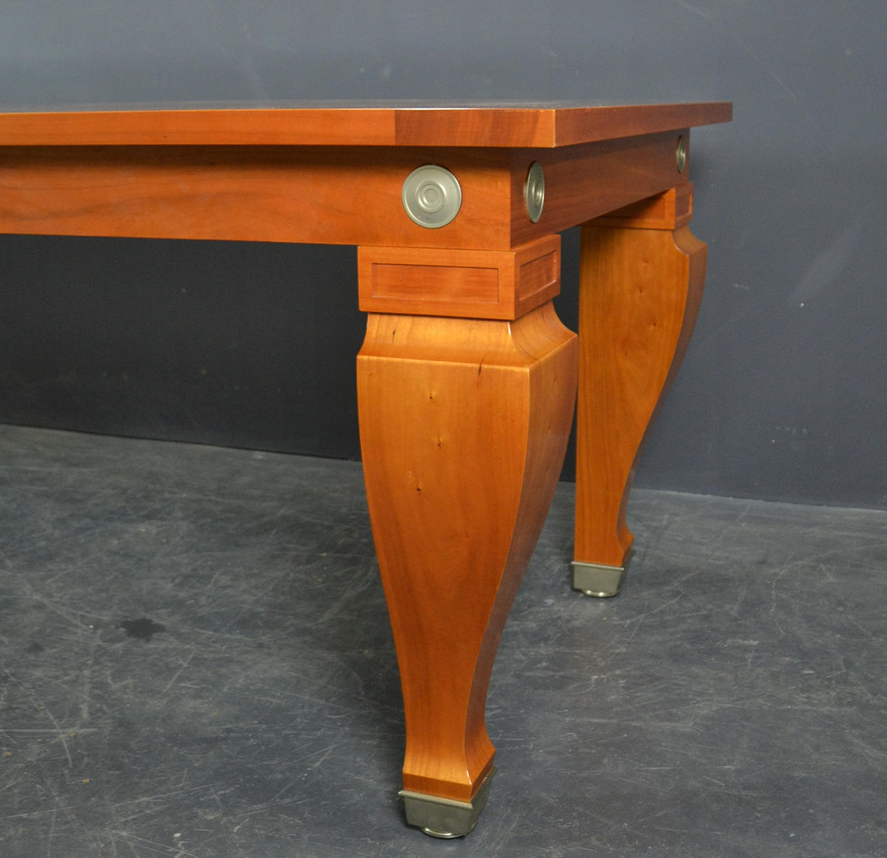Fremstillet af massivt kirsebærtræ, stole betrukket med sort læder.