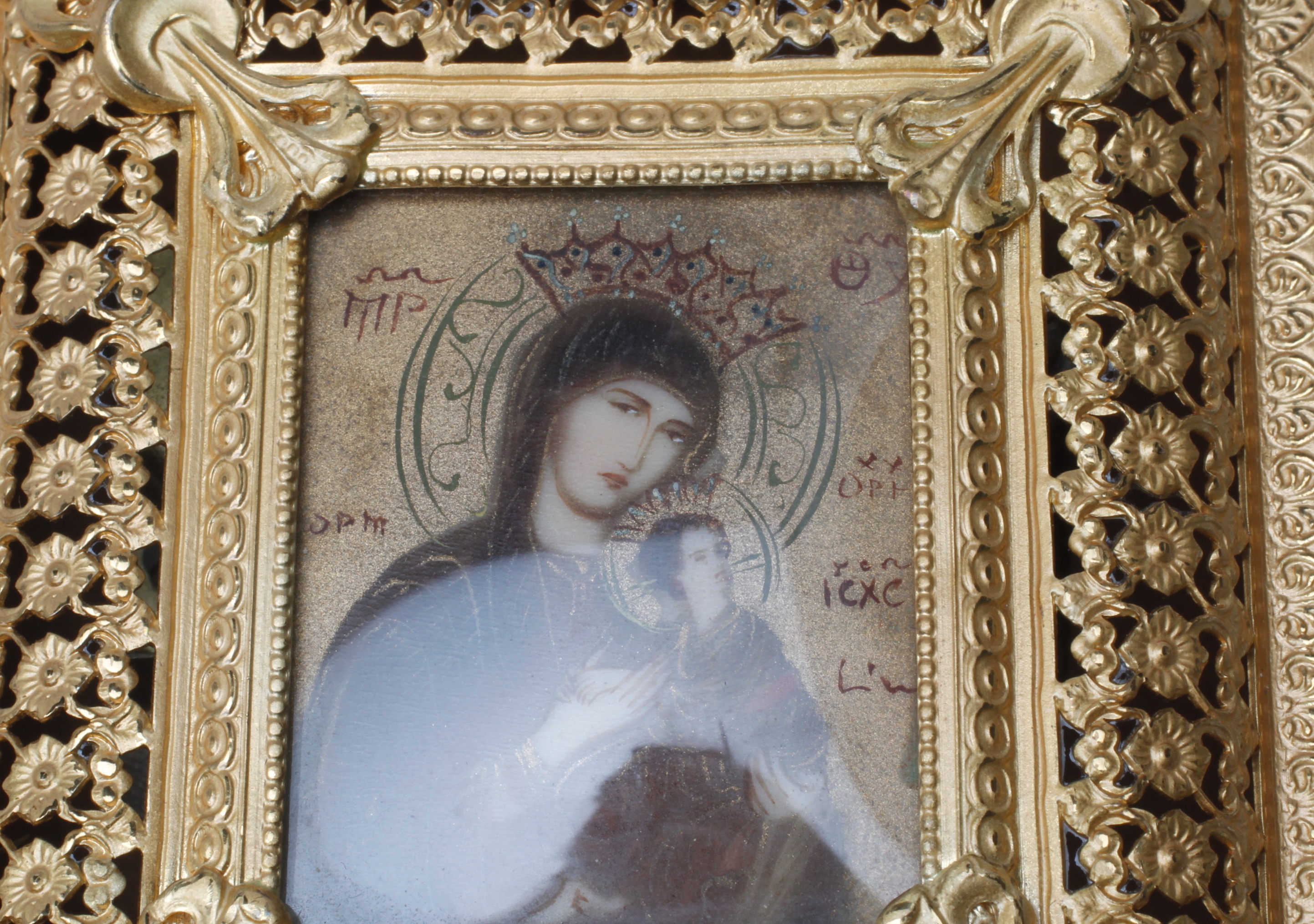 138419. IKON, forgyldt messing/maleri, 20. århundrede.