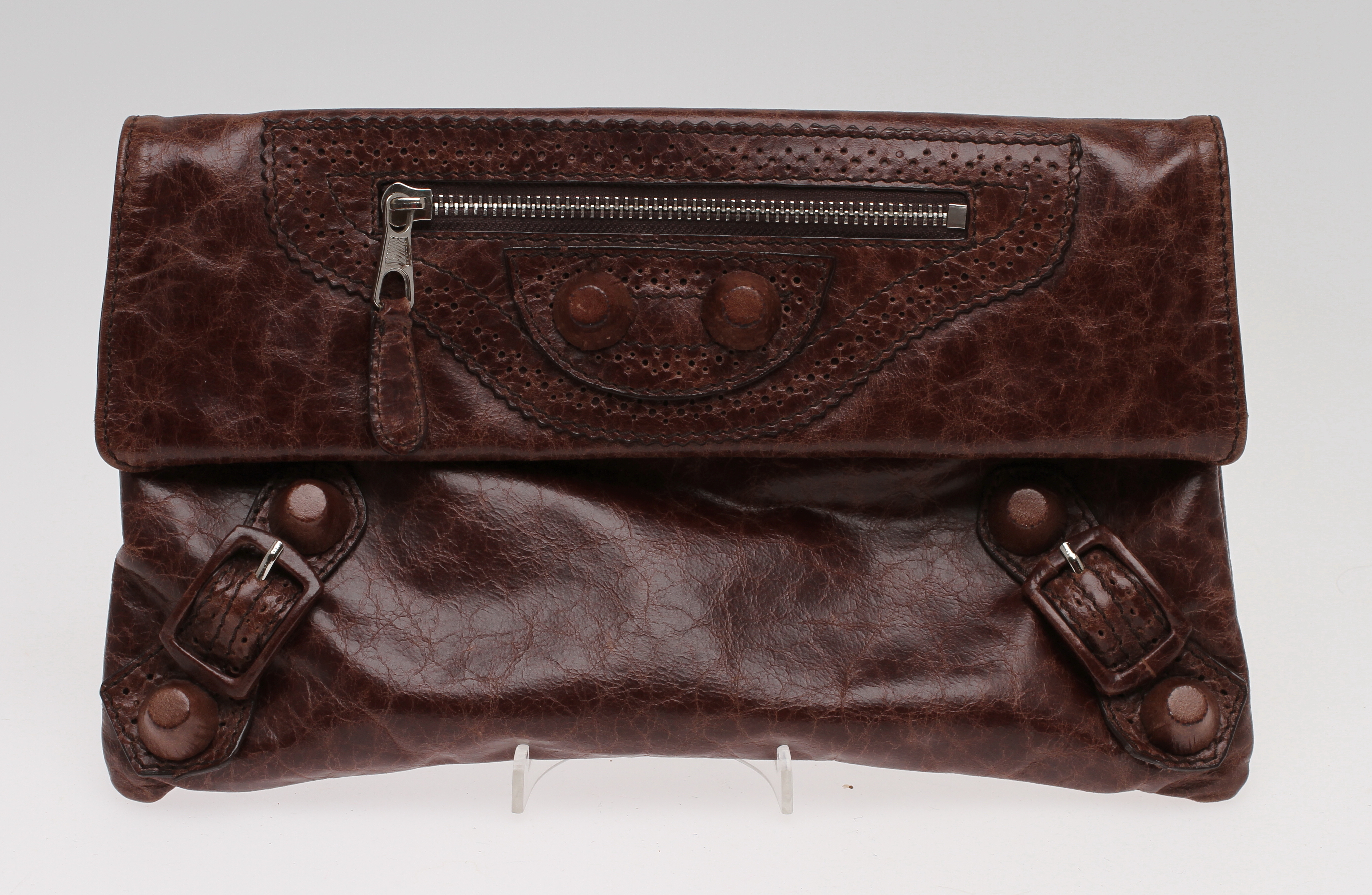 13865. KONVELOPTASKE, Balenciaga, brunt læder.