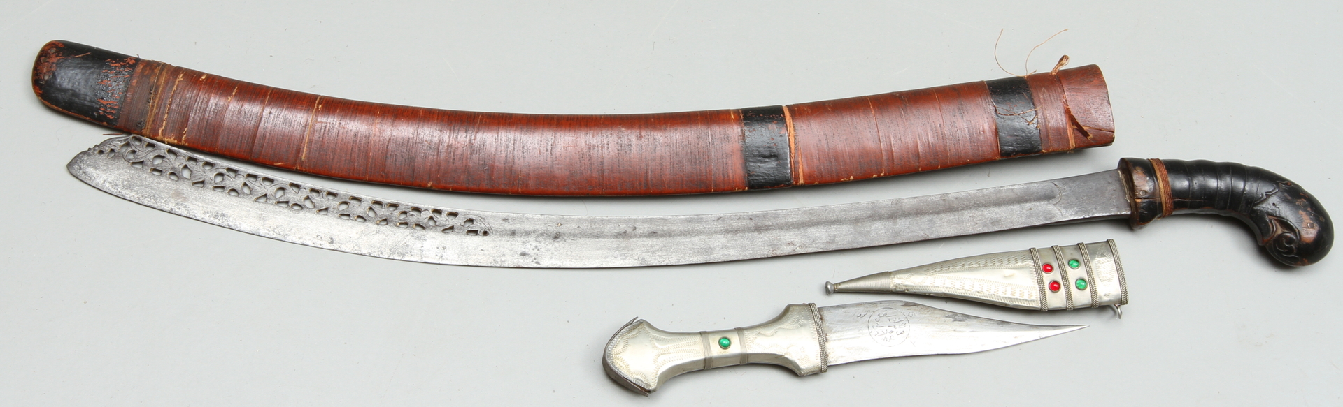13876. ORIENTALISKE VÅBEN, 2 stk, Dolk og sværd.