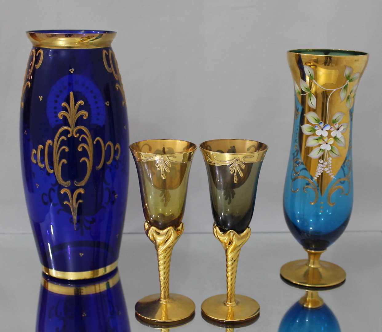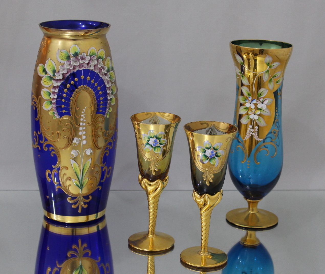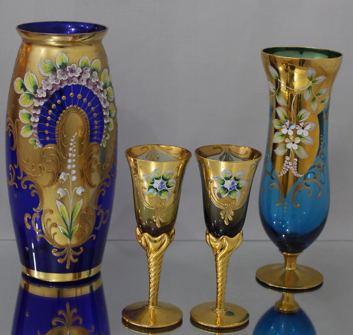 138834. 2 VASER + 2 GLAS, håndmalet Murano.