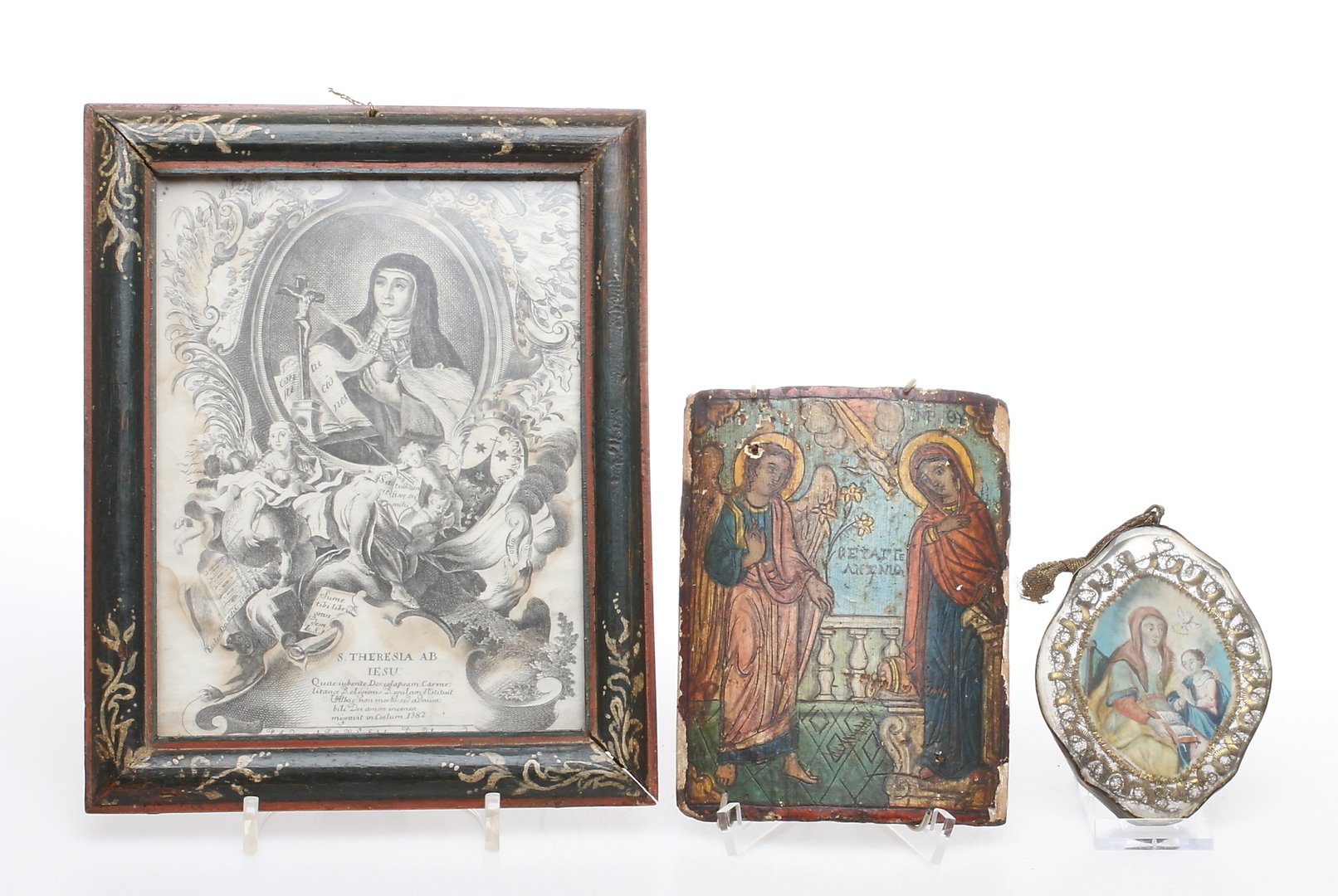 139253. RELIGIØSE GENSTANDE, 3 dele, inklusive IKONER, 1800-tallet.