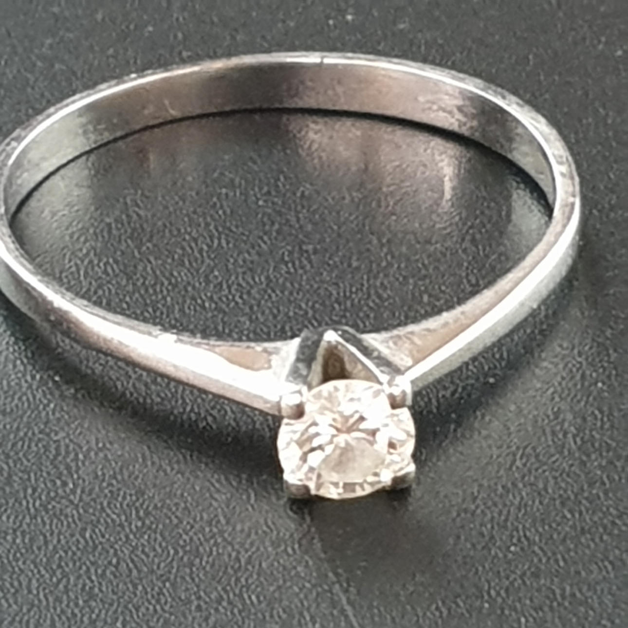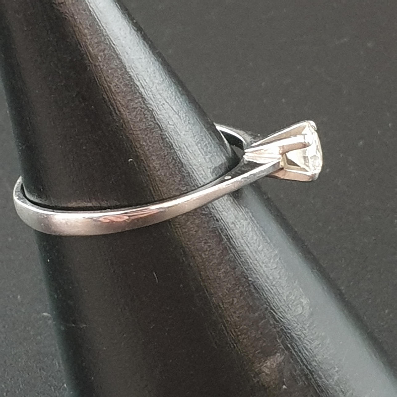 Diamantring - hvidguld 750/000, sart skinne med hævet flade, ringhoved besat med en brillant på ca 0,25ct, Wesselton, klosætning, vægt ca 2g, ringstr. 57.