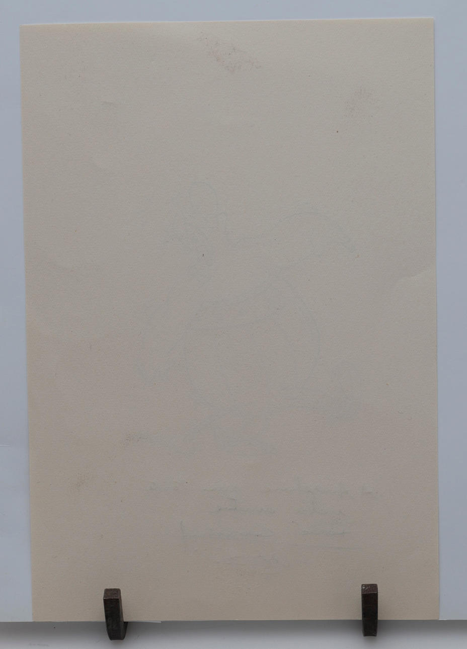 Blæktegning på papir Signeret og dedikeret 21,7x14,9 cm.