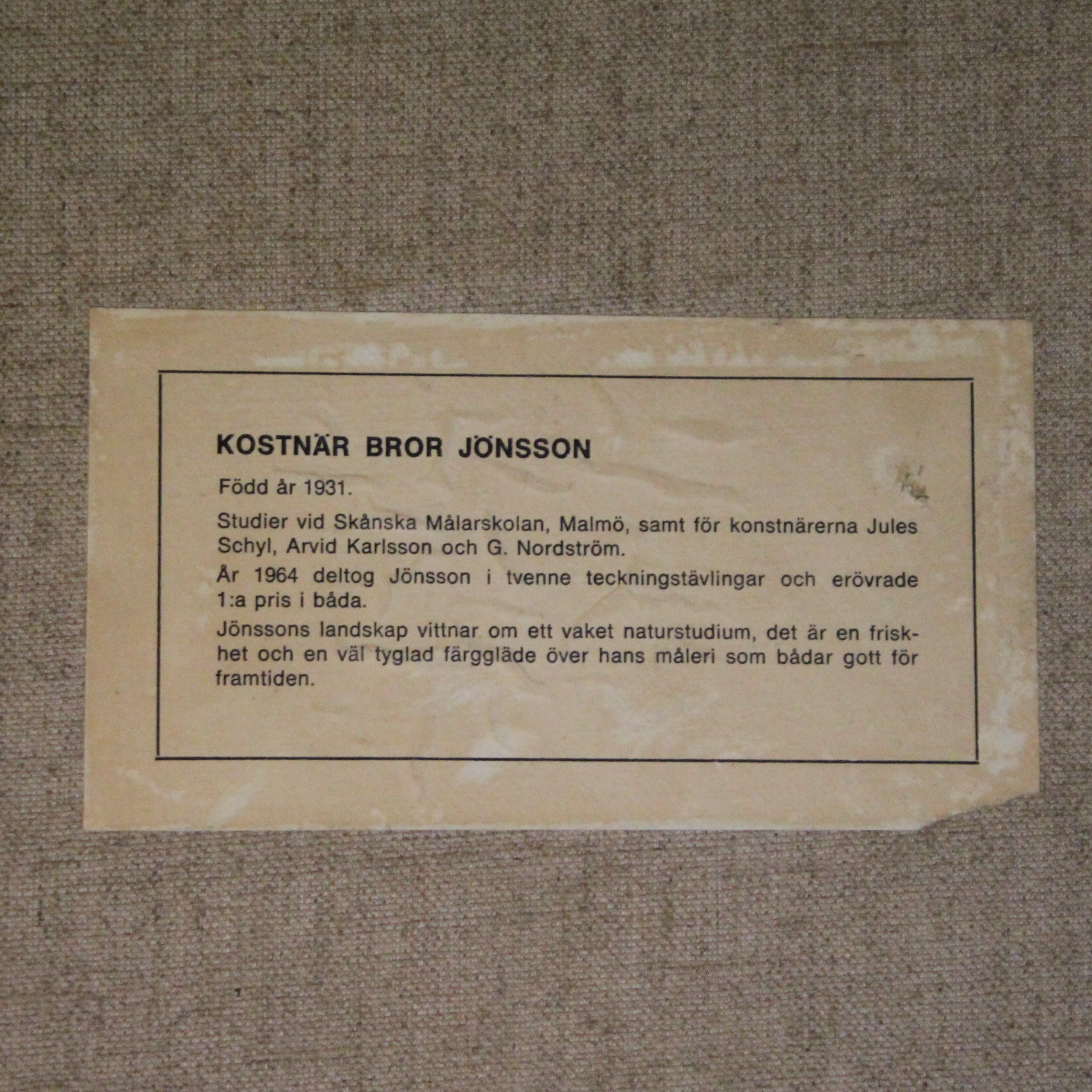 1397448. BROR JÖNSSON. OLIE PÅ LÆRD, signeret.