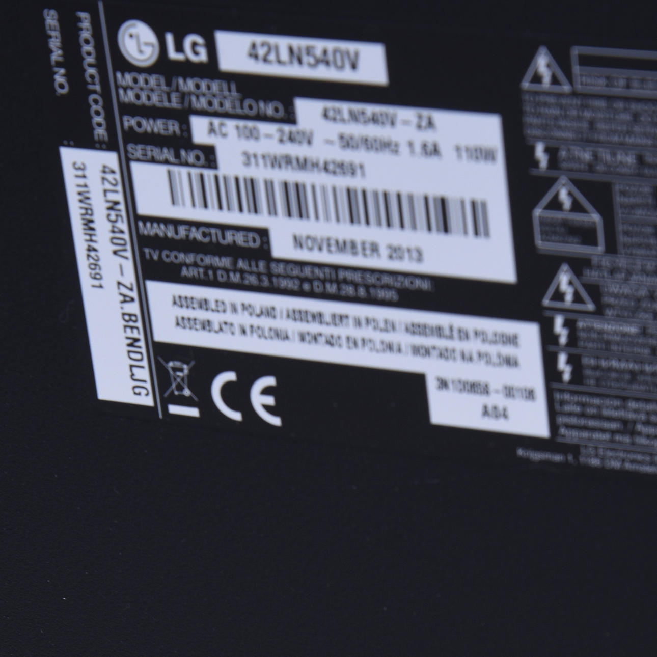 1398508. TV, LG, 42 tommer.
