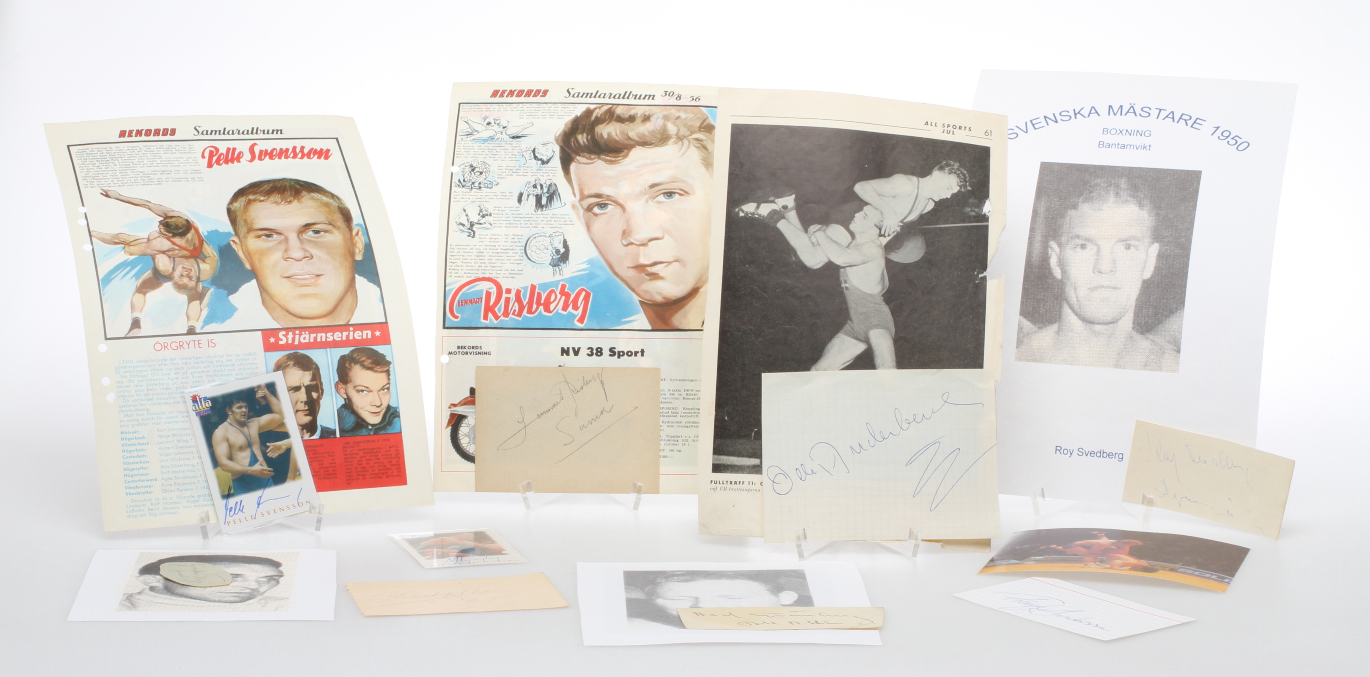 139956. AUTOGRAFIER, 9 stk, Boksning / Brydning, Sverige.