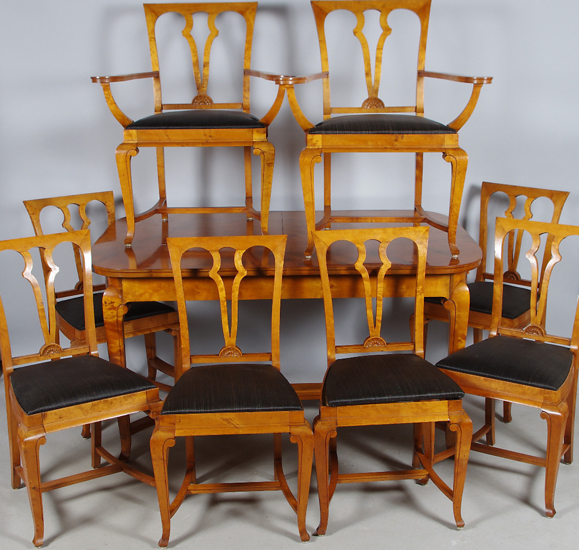 140027. SPISEGRUPPE, birk, chippendal stil.