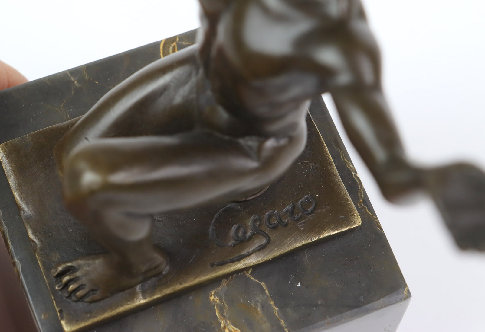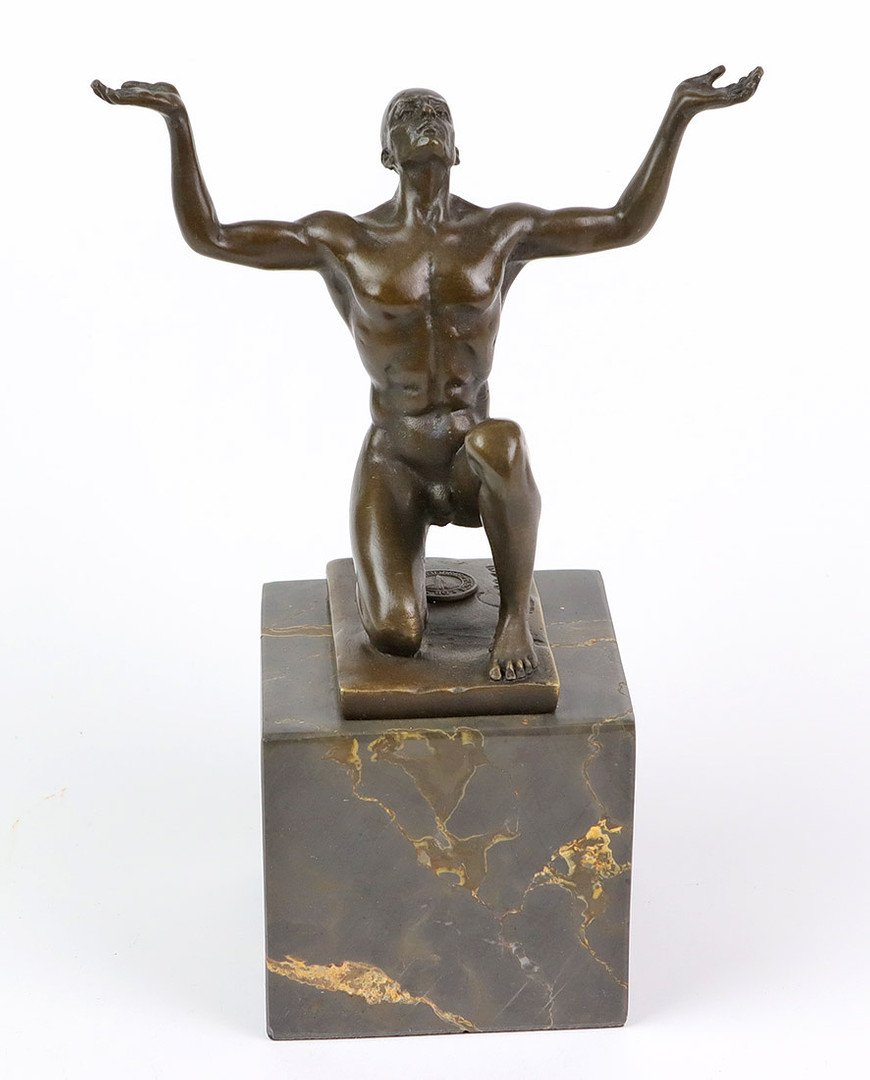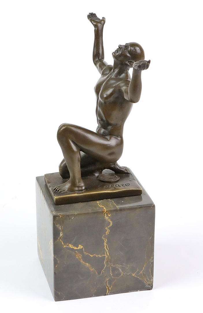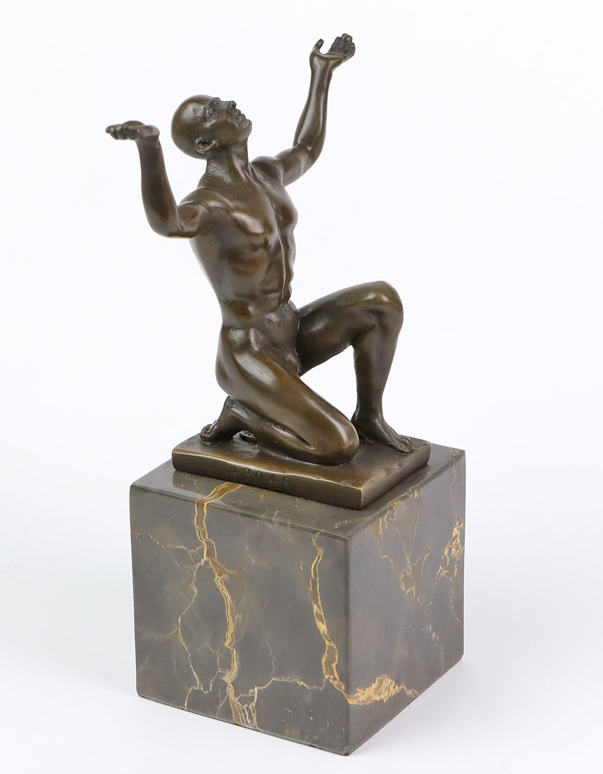 1402392. BRONZEFIGUR Adonis nøgen solbader.